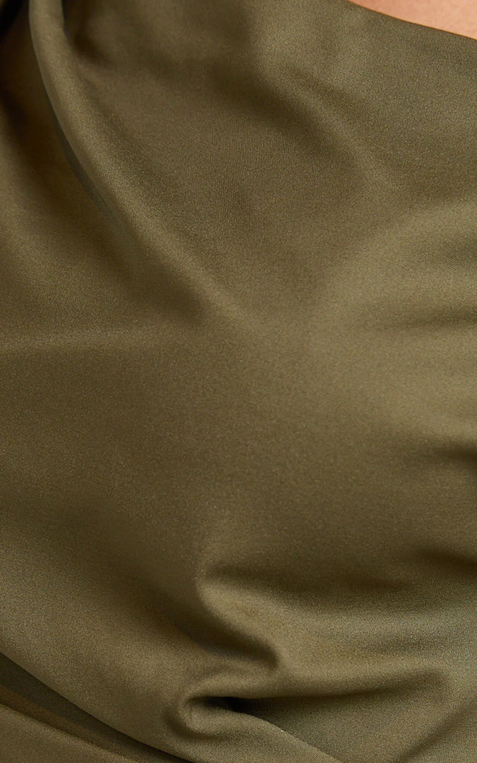 The Alexandria Midi Dress - Tip Shoulder Draped Fitted Dress In Olive delivers clean lines and a sculpted fit that moves with you, making it an instant essential when you want sophisticated, high-low dressing without the fuss. Style it up with delicate gold accents and a sleek clutch, or keep it pared-back with simple heels, either way, green never looked so good.