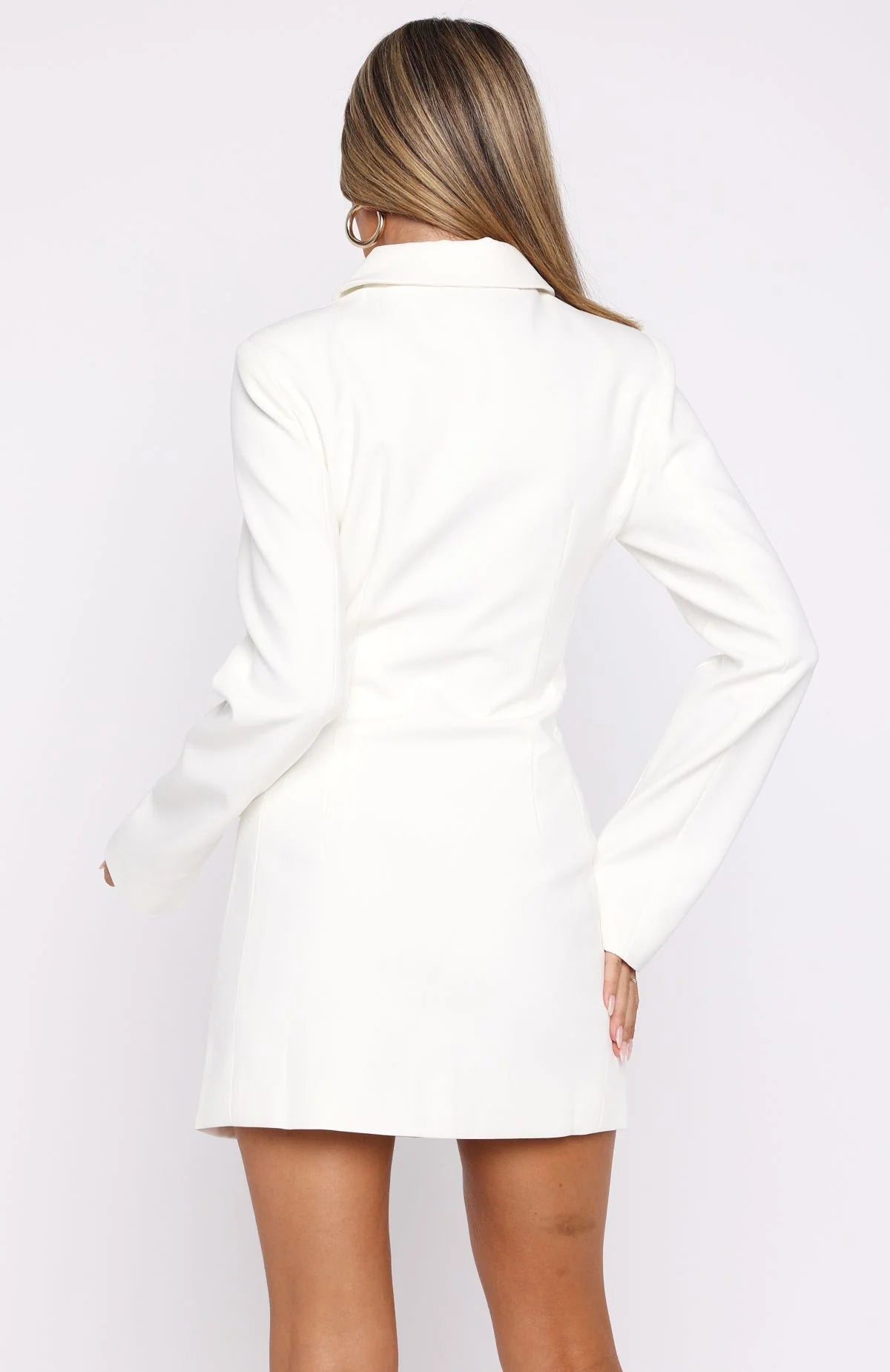 Girl boss energy! The Alpha Femme Long Sleeve Mini Dress in White features a sharp collar neckline, structured padded shoulders, and long sleeves. With a button-down front closure, handy side pockets, and full lining, it blends power and polish effortlessly. Style it with kitten heels, layered gold jewellery, and a chic top-handle bag for a standout look.