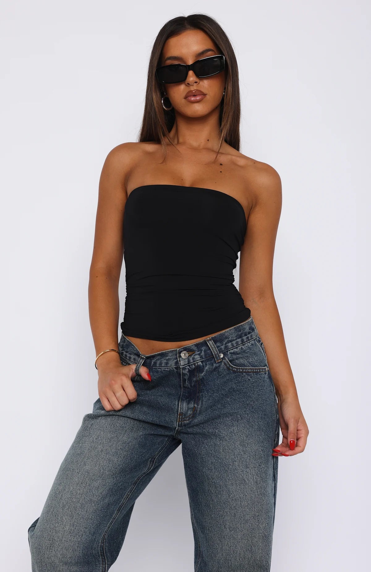 Wear your basics with the Always Beside You Top Black. Features a strapless fit, ruched design at side, grip tape, cropped fit and unlined, silky soft, stretch fabric. Pair with a PU mini skirt and shoulder bag for an on trend look worthy of your next instagram post!