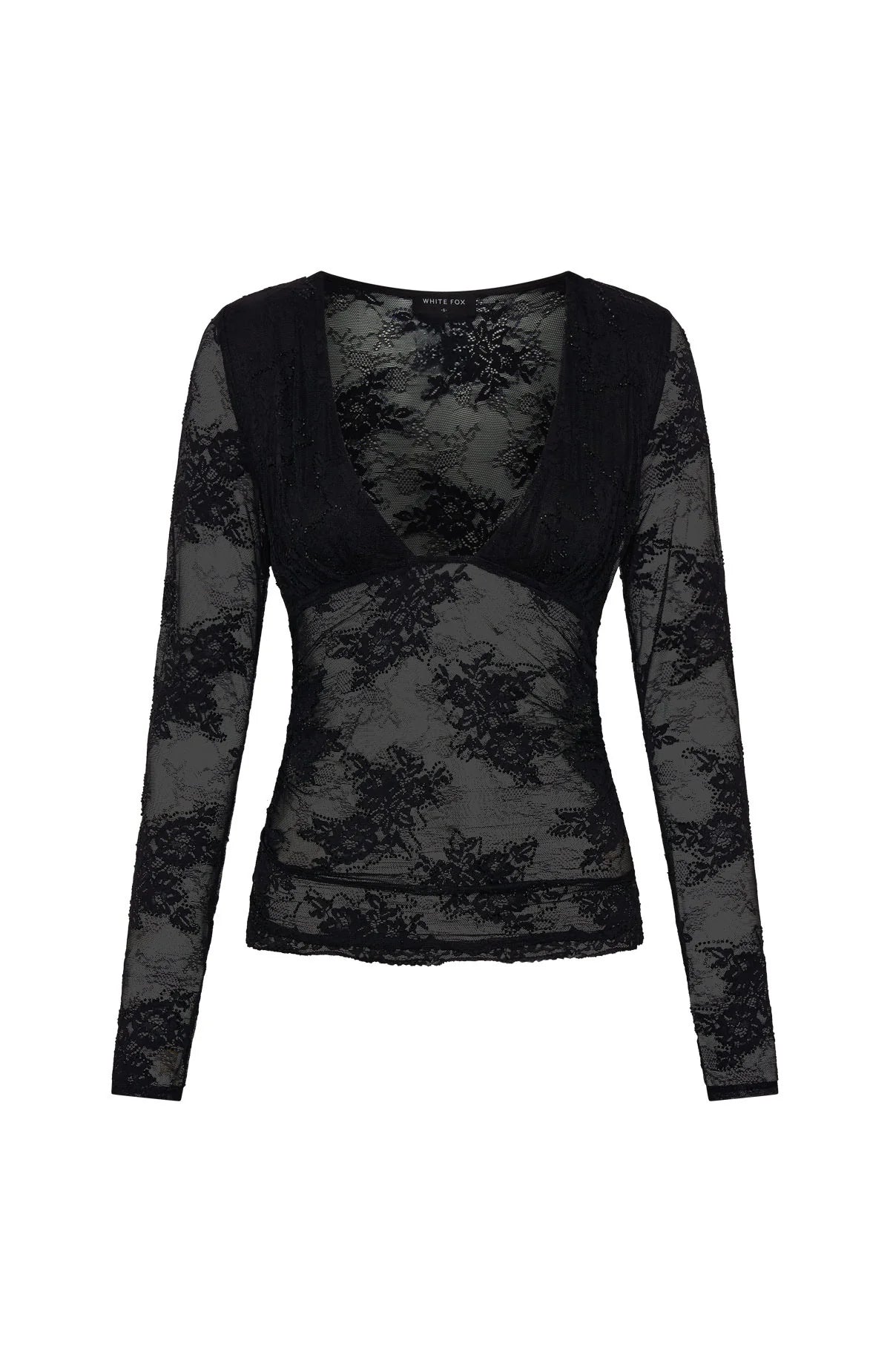 Lace head to toe! The Always Stay Embellished Lace Long Sleeve Top Black is crafted with a plunging neckline and long, sleek sleeves to frame your silhouette. Luxurious lace layered with delicate beading, a fully lined bust for coverage, and subtle side‑ruched detailing through the bodice add texture and elegance for standout appeal. Style with the matching Be Our Guest Embellished Lace Mini Skirt for a flirty look.
