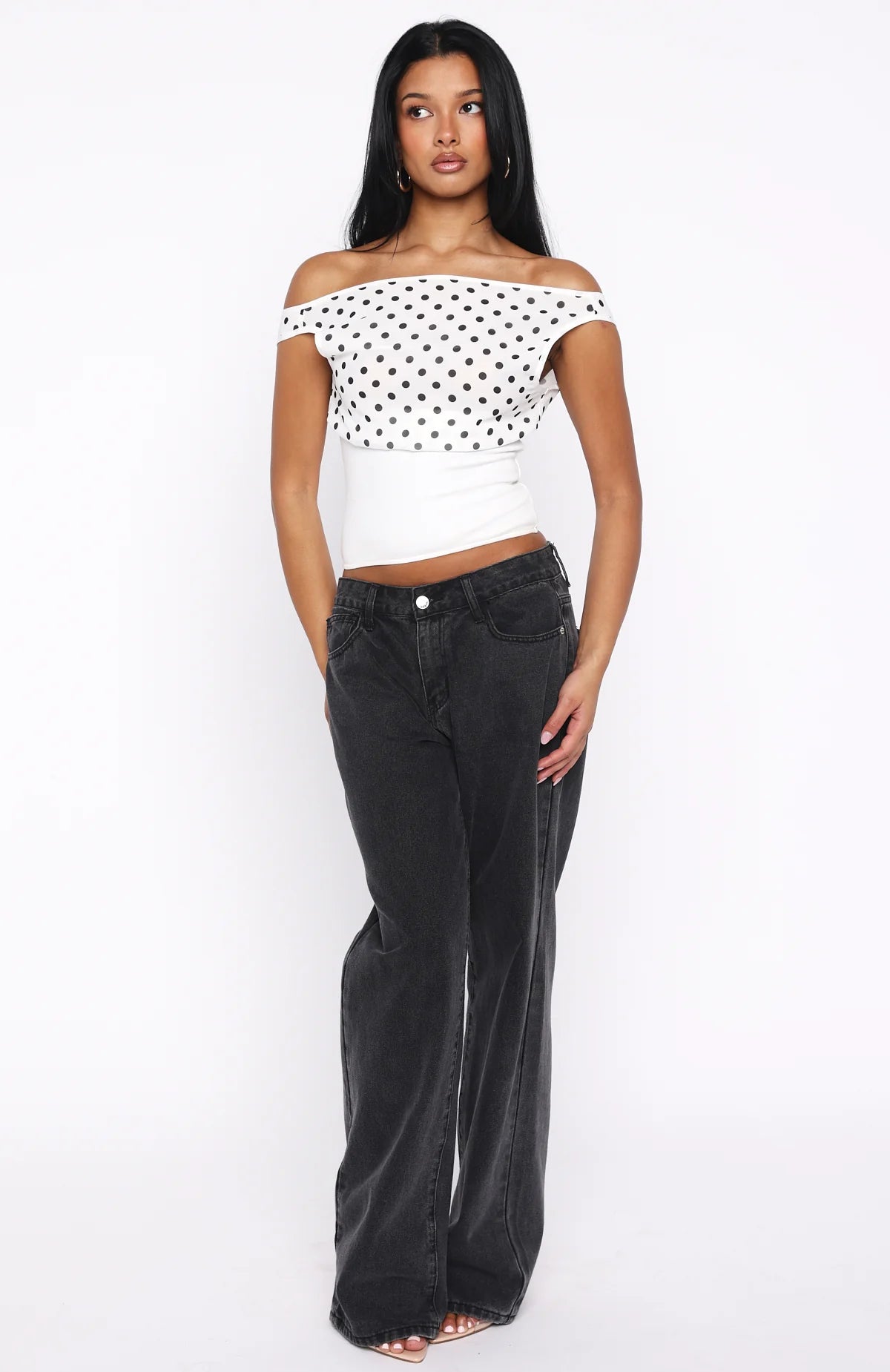 Our Cherry Charm Top in White Polka Dot is the perfect blend of cute and feminine! This stunning top can be styled on or off the shoulder, has a fitted waist for a cinched look, unlined chiffon material and low v back for a backless moment. Pair with your fav White Fox denim jeans and kitten heels for a cute girls long lunch!