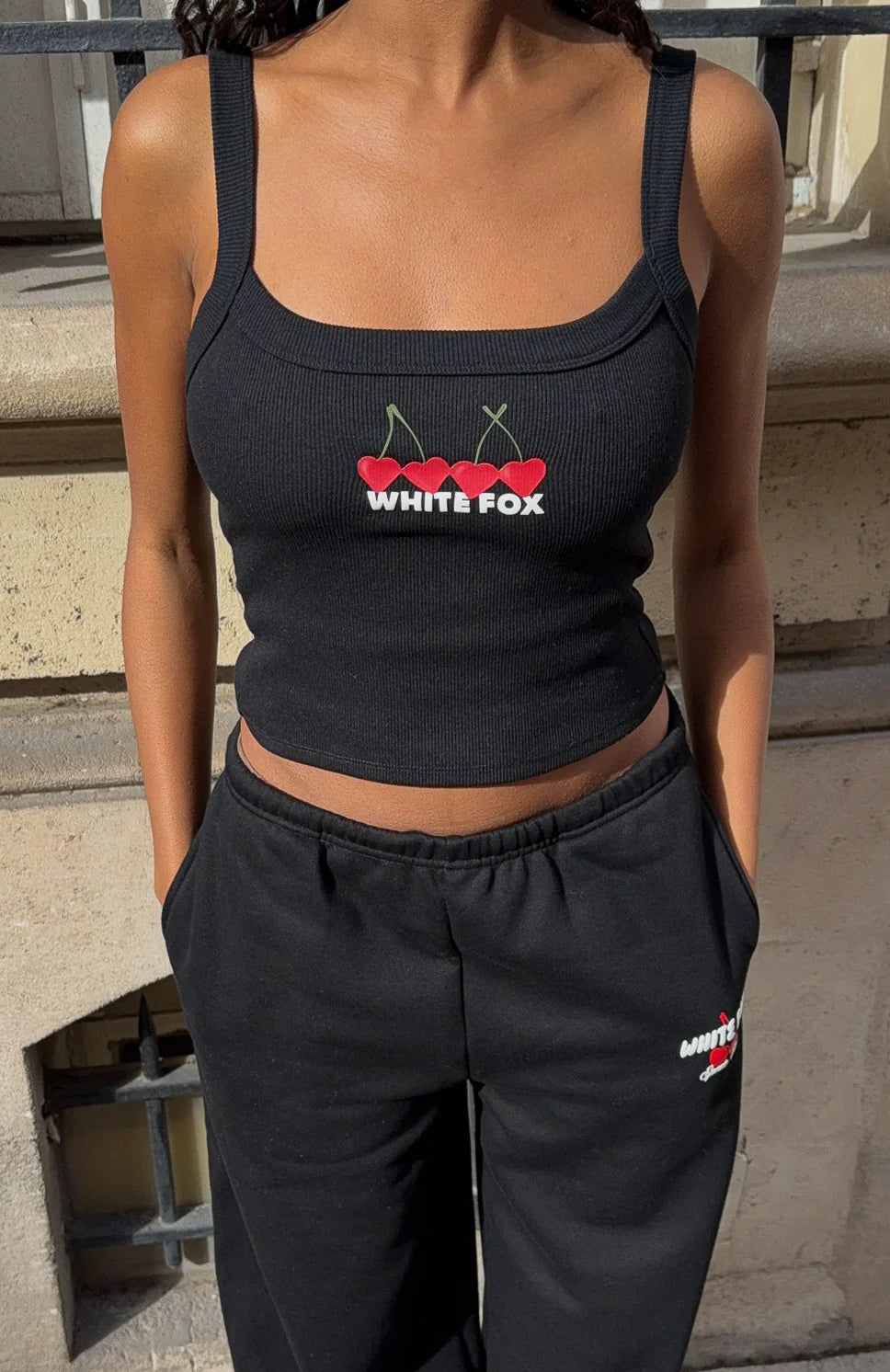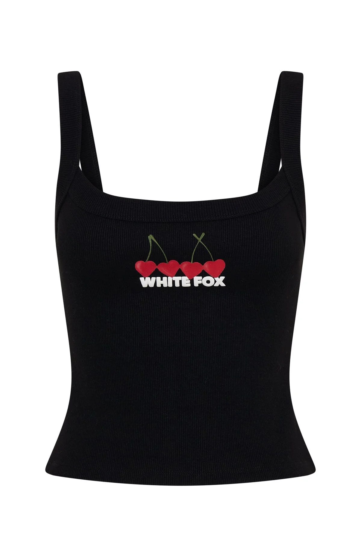 BRB adding to cart! Meet the Club 14 Taylah Singlet Top Black. Crafted from a ribbed, unlined fabric, it features thick shoulder straps and a thick binded scoop neckline. Finished with a puff print White Fox text and a printed cherry graphic, adding a playful touch to its minimalist style. Style with the any of the matching Club 14 lounge sets for a coordinated fit.