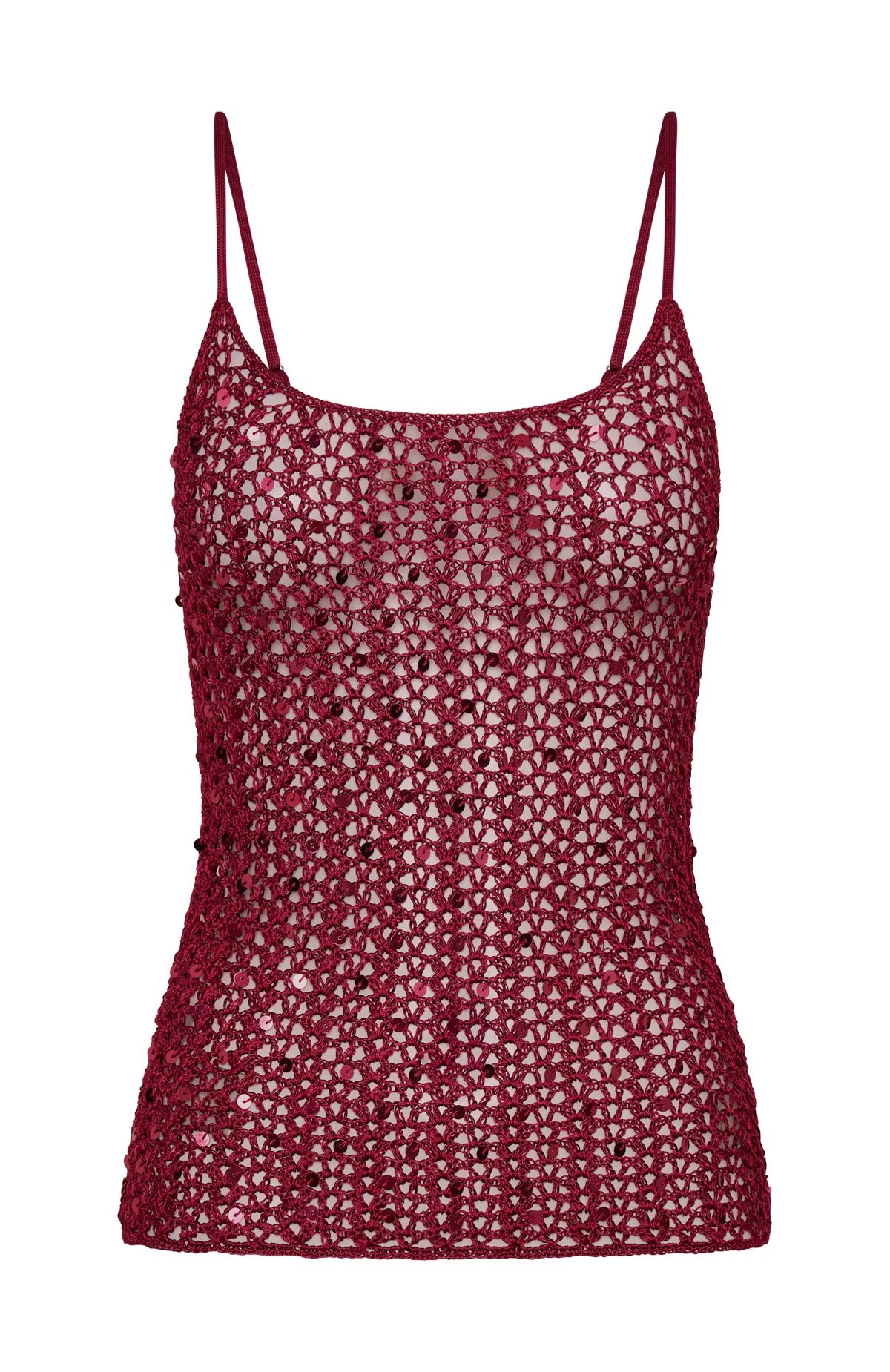 Leaving my phone on dnd and dancing the summer away in the Femme Fuel Sequin Crochet Top in Berry. Featuring adjustable straps, a scoop neckline, sheer knit construction, and shimmering sequin accents. Style with Dunes And Dreams Shorts and layered gold jewellery for late-night laughter under the stars.