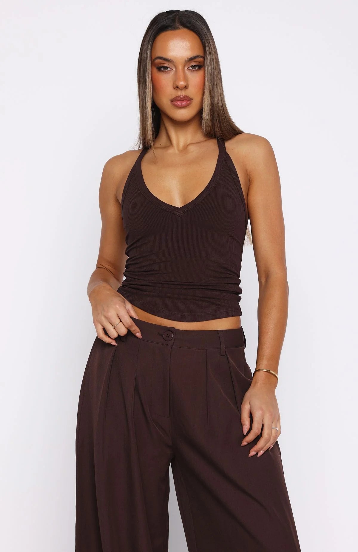 The Figuring Out Feelings Tank in Chocolate offers a beautifully feminine silhouette for your everyday rotation. Designed with thin shoulder straps, a racer-back deisgn, a subtle V-neckline, and a fitted shape, it’s fully lined in a high-stretch fabric for comfort and ease. Pair it with the matching Figuring Out Feelings Pants in Chocolate, slide into sandals and sunnies, and you’re set for a laid-back look we truly love.