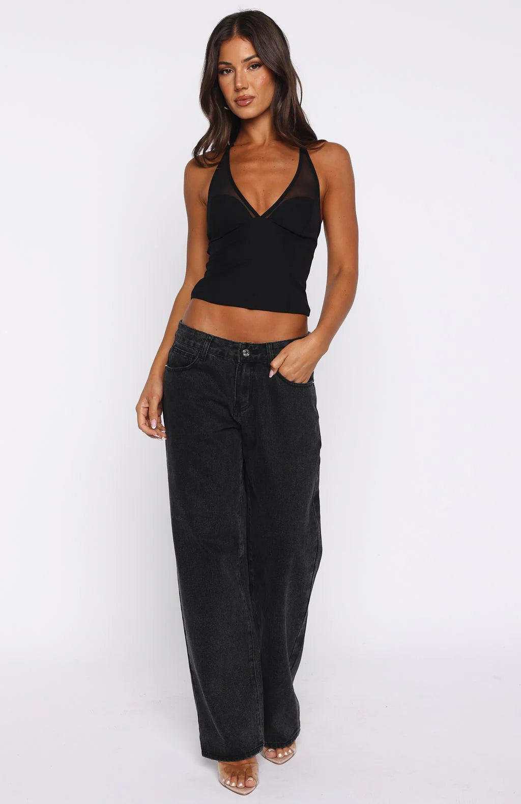 Meet From The Skies Halter Top in Black, the night out top you’ll be reaching for on repeat! It features slender spaghetti halter straps and a daring plunge neckline layered with sheer mesh and strategically placed coverage over the bust. A figure-hugging, fully lined bodice are finished with a sleek back zipper and hook-and-eye closure for effortless wear. Pair with your fav denim jeans, kitten heels, layered gold jewellery and shoulder bag for an understated by sexy fit!