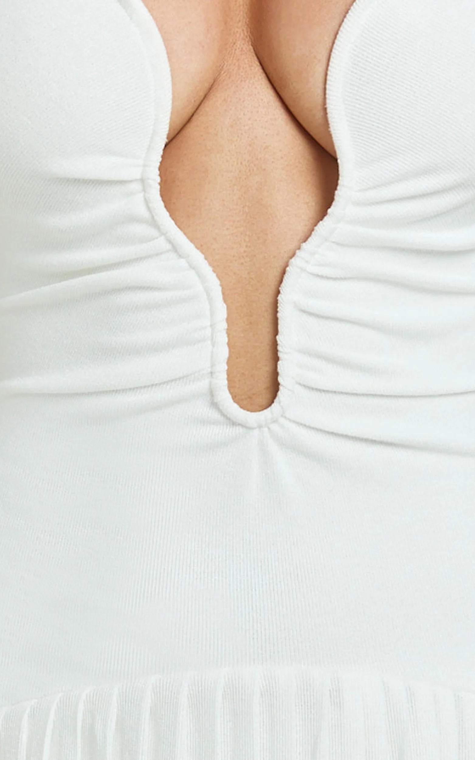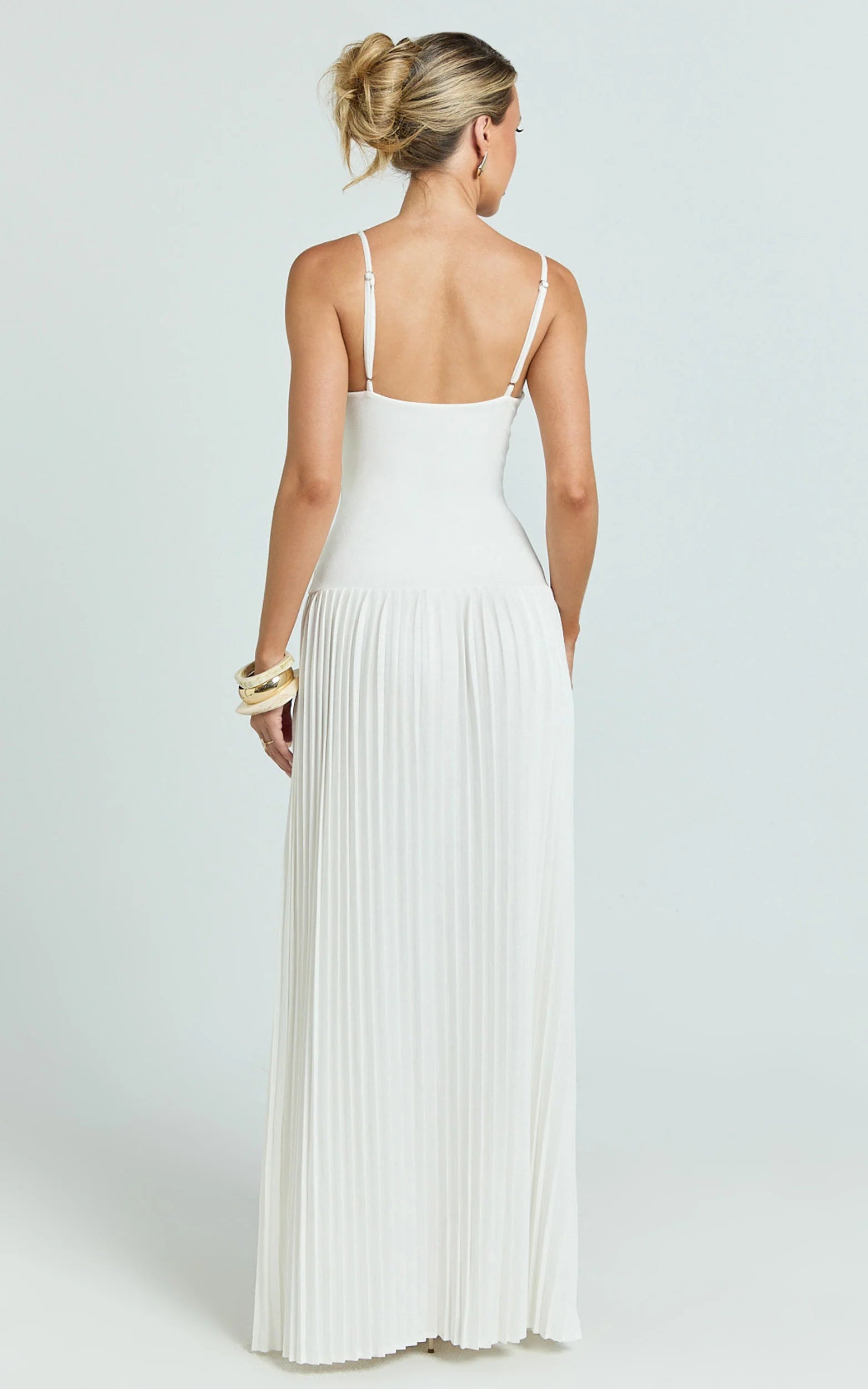Hathaway Maxi Dress - U Shaped Neck Pleated Dress In Ivory is your cue to get glam without the stress. Slip in, glow on, and let the compliments find you.