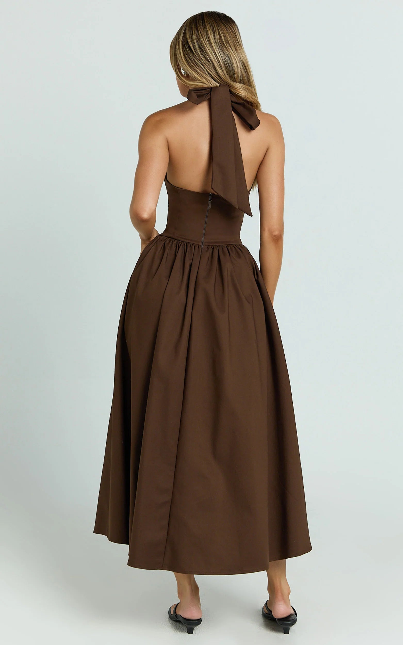 The corset panel design defines your waist, while the open shoulders bring flirty energy to every move. A sleek choice for date nights, weddings, and after-dark plans, it’s the kind of brown Dresses moment that feels luxe without trying too hard.