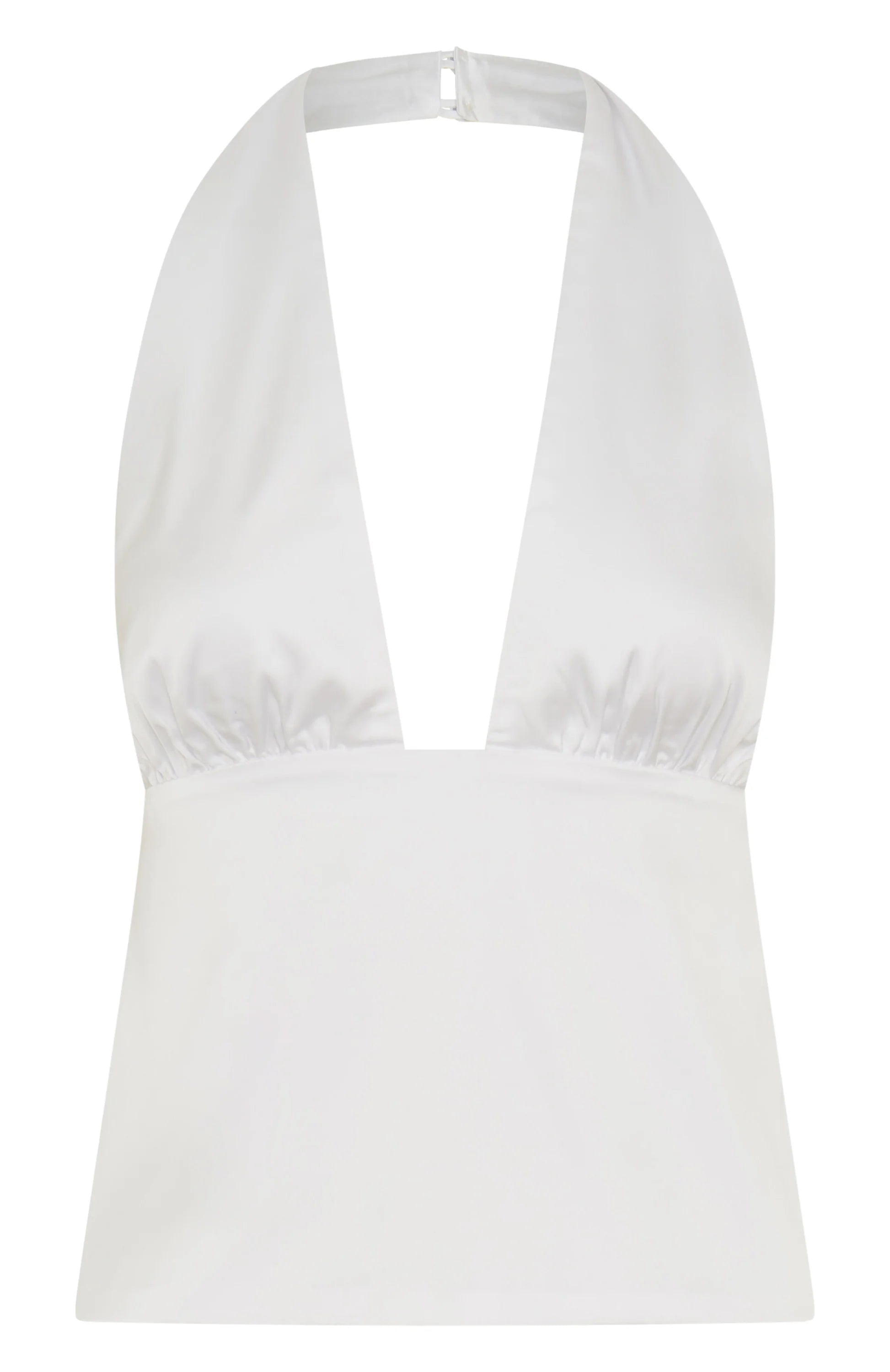 The Here For Me Halter Top White is the perfect blend of sexy and flattering for your summer adventures! Features halter neck with button closure, low plunge neckline, backless and thick self tie back straps to create a structured fit. Complete the look with a dash of sparkle in a mini skirt or accessories for the perfect summer fit.
