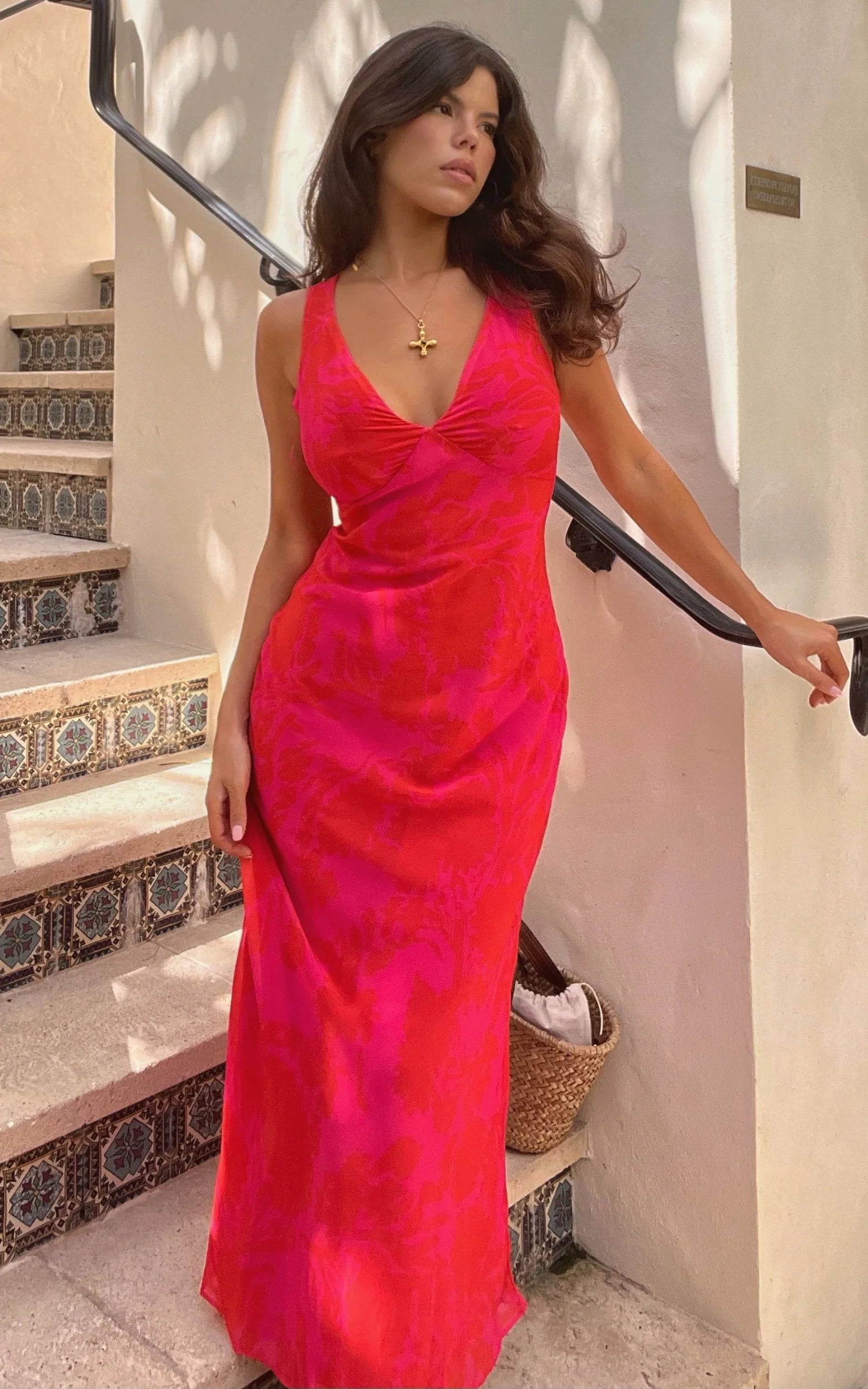 Get ready to turn heads in our Jodie V Neck Midi Slip Dress In Pink Floral! This stunning cocktail dress is perfect for any upcoming special occasion. The pink floral print adds a touch of femininity and the midi length keeps it classy. The v-neckline accentuates your décolletage while the slip style hugs your curves in all the right places. Pair with some strappy heels and statement earrings for a complete head-to-toe look that will leave everyone breathless. Whether you're attending a wedding or hitting up happy hour with your girls, this dress is an absolute must-have addition to your wardrobe!