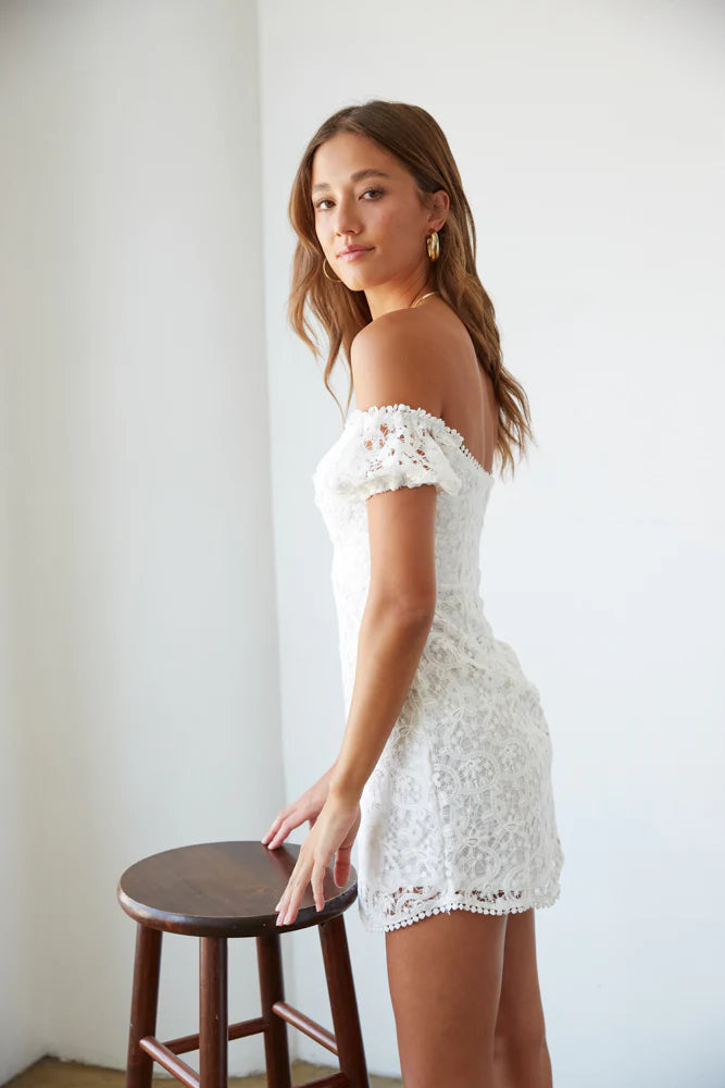 The Karlie Lace Off-The-Shoulder Puff Sleeve Mini Dress is just as chic as she is classy! This flirty style features a sweetheart neckline, puff sleeves, and lace overlay. Wear these sleeves on or off the shoulder. Also available in . Step into a for an elevated final touch.