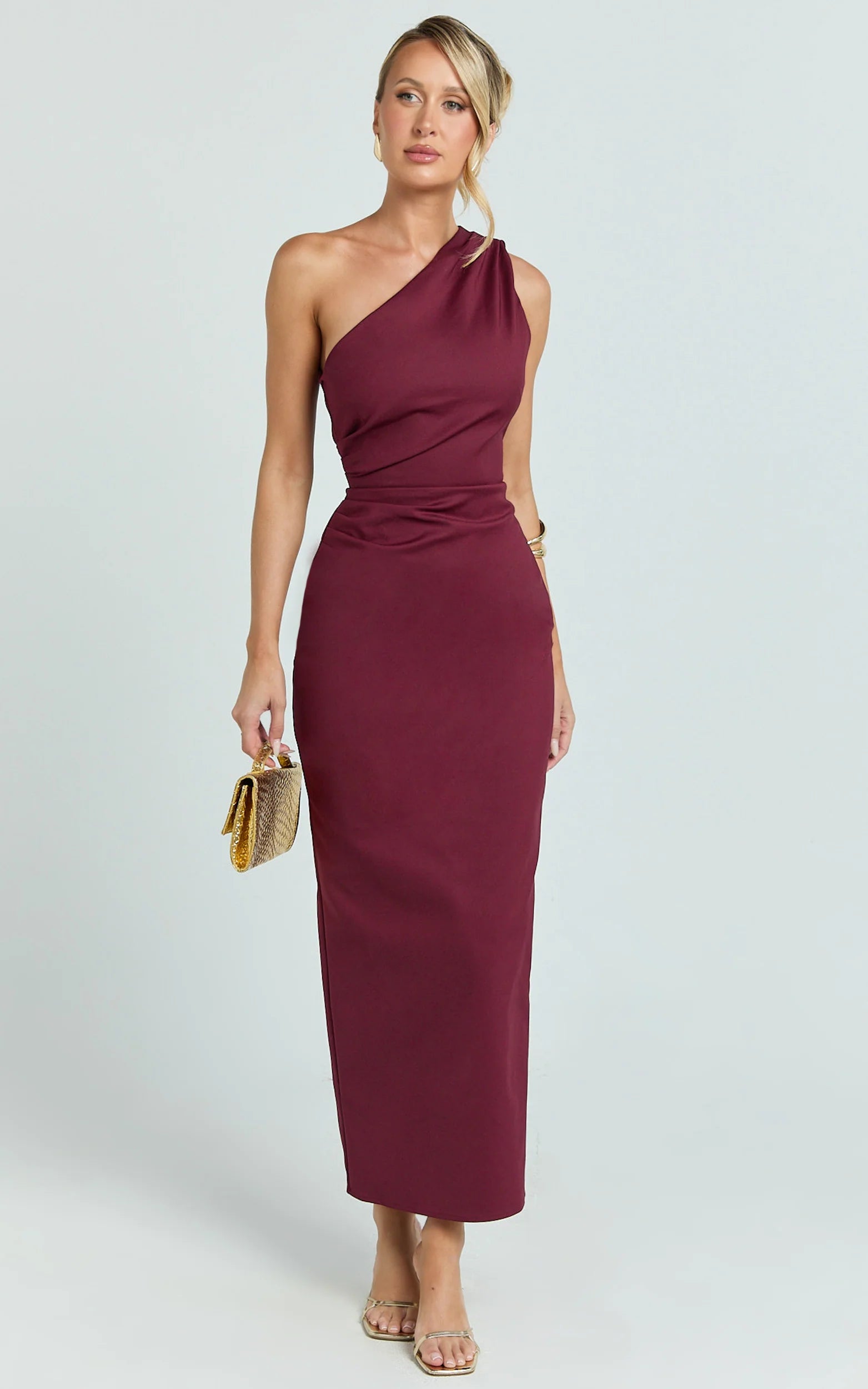 Keywords: maxi dresses, one shoulder dress, fitted dresses, wine dress, formal dresses, evening dresses.