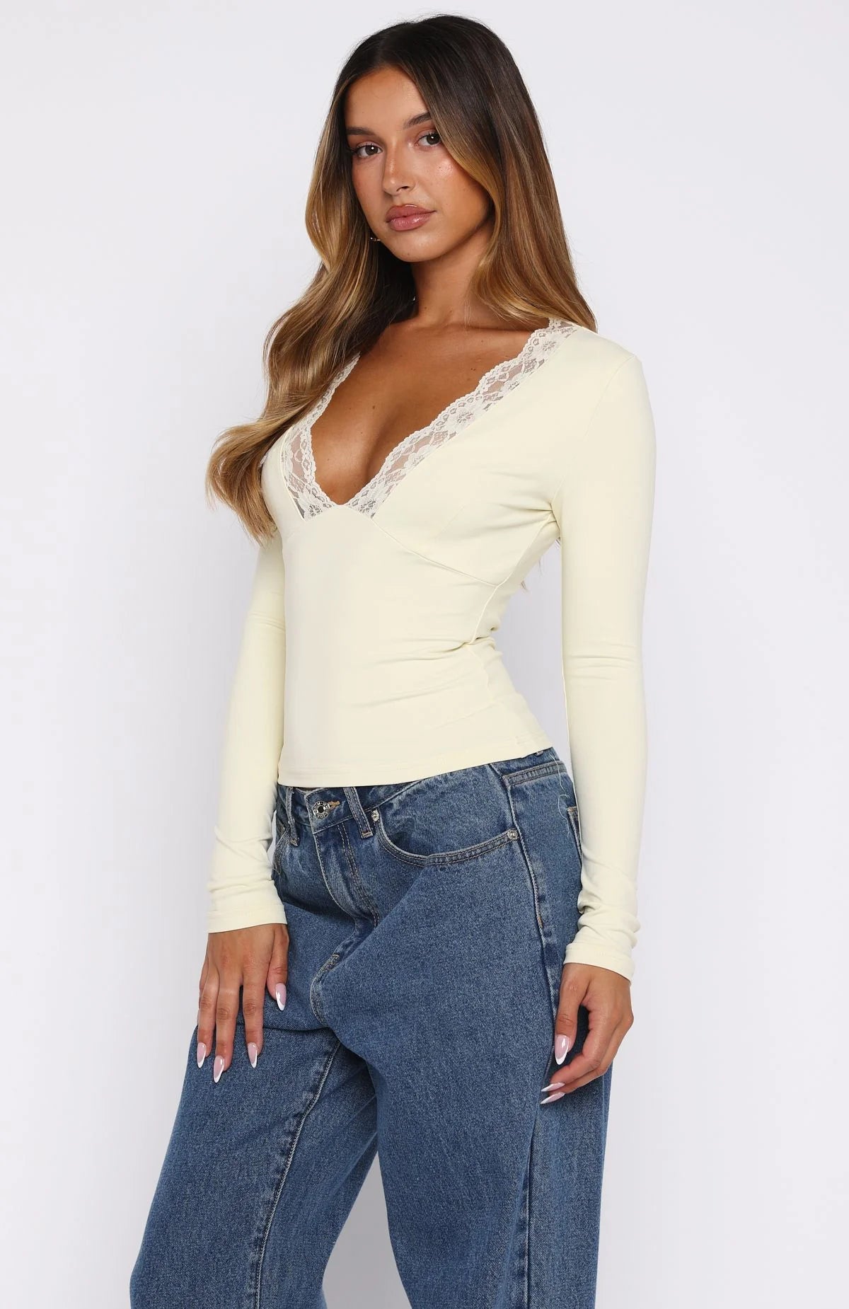 Last minute weekend agenda set...time to rock a killer 'jeans and a cute top' combo! The Knew That All Along Long Sleeve Top in Lemon features a V-neckline with lace trim detailing, long sleeves, unlined and stretch material for an easy slip on design. Pair with your favourite WF jeans and gold accessories.