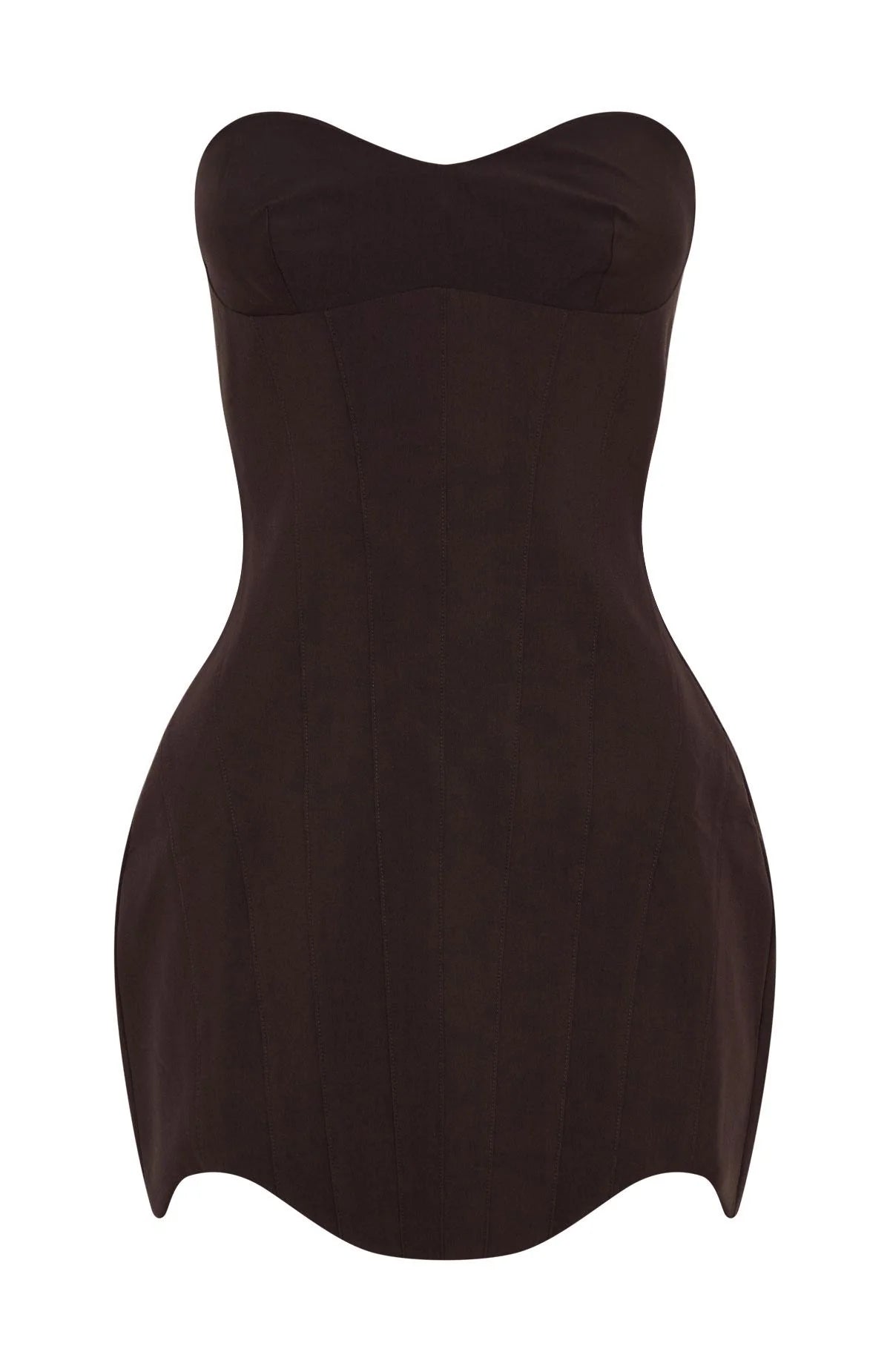 Turn heads and steal hearts in our Lavender Fields Strapless Mini Dress in Chocolate. With a strapless neckline lined with grip tape, an under‑bust seam, and panelled detailing down the bodice, this dress offers both structure and allure. Fully lined and finished with an invisible zipper with hook‑and‑eye closure, the curved hem adds the perfect flirty flourish. Style with refined heels and a statement bag for the perfect fit to admire the beauty of Paris.