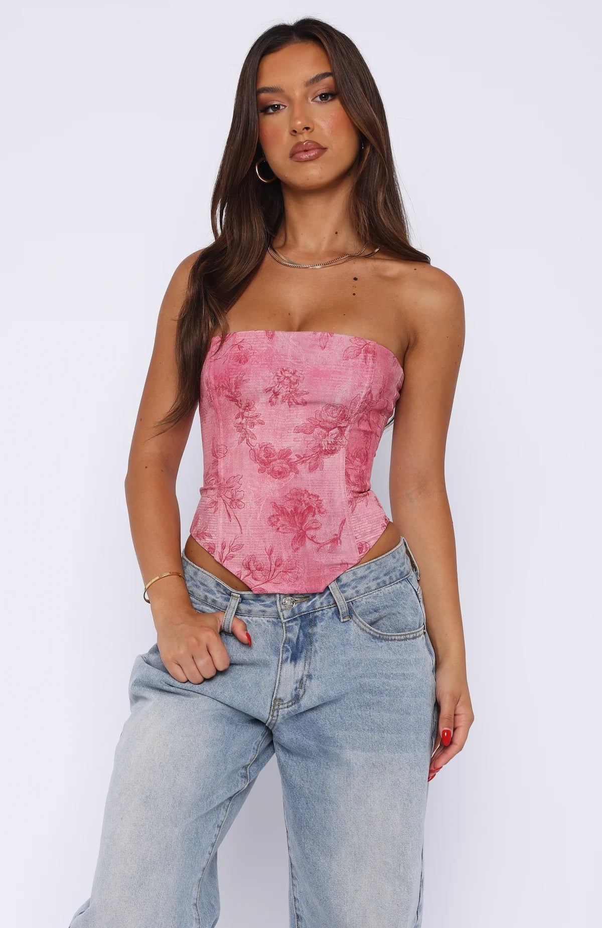 What's not to love about the Let It Go Strapless Bustier Fuchsia Orchid! This bustier is a strapless style with grip tape, straight neckline, boning in bodice, lace-up back design, lined fabric and gorgeous printed fabric. Pair with a low rise jean and simple accessories for a stand out look.