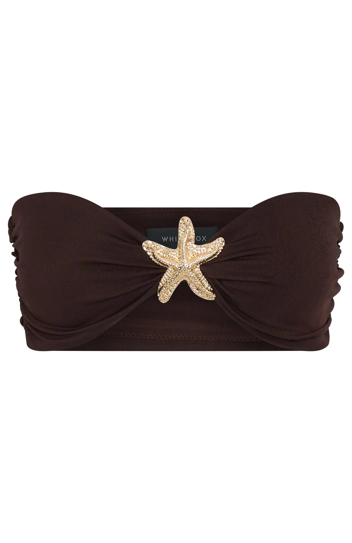 Steal all the attention in our Lil Mermaid Strapless Top in Chocolate! Features a strapless neckline with grip tape for support, gathered fabrication on side and statement oversized shell gold hardware detailing centre front. Team with the matching Lil Mermaid Maxi Skirt in Chocolate for a stunning dinner fit!