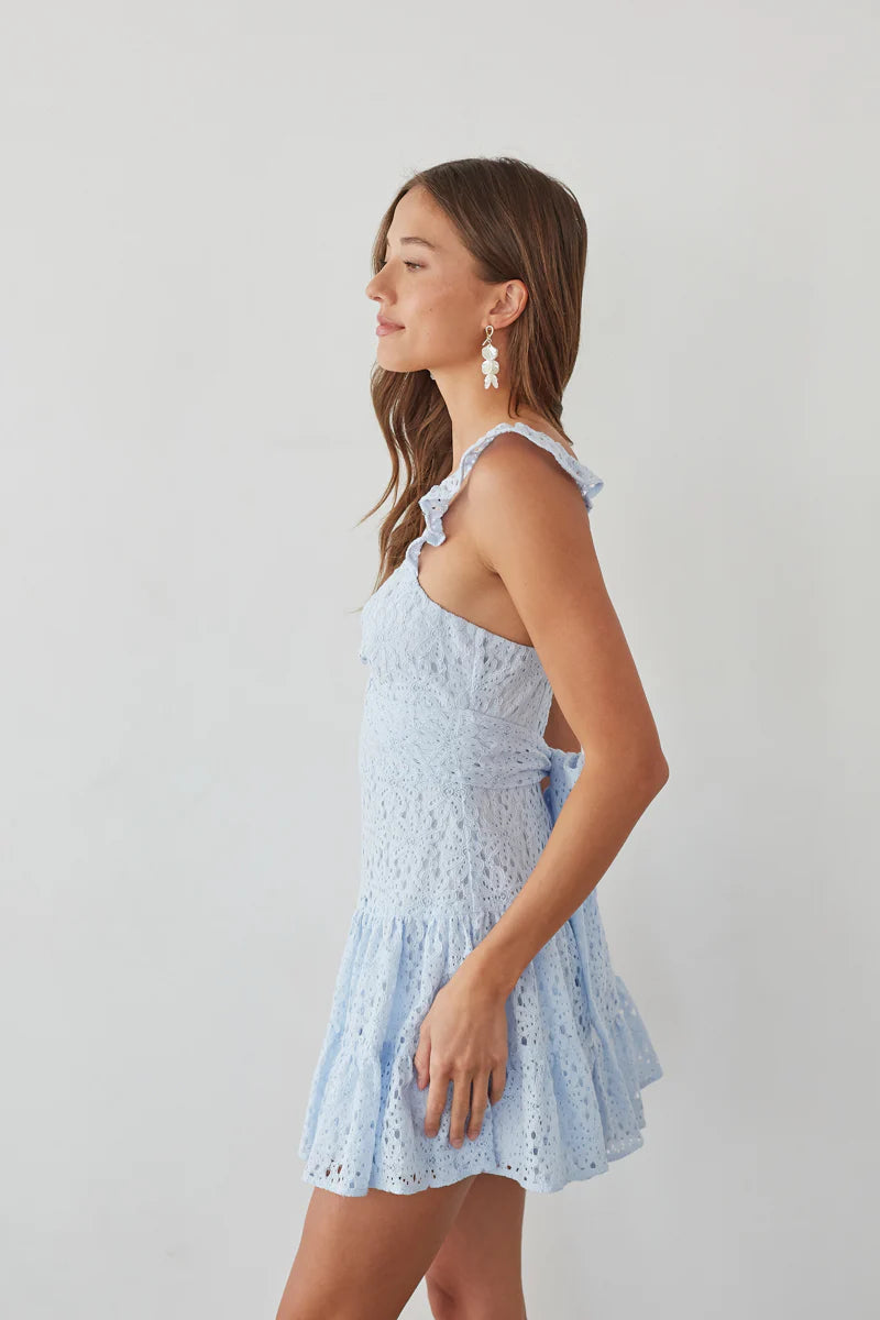 Get ready for a celebration in the Liliana Eyelet Lace Mini Dress! This stunning dress features a lace design, v neckline, adjustable ruffle straps, keyhole front, and a tiered skirt. Available in white and pink. Pair with your favorite to complete the look!