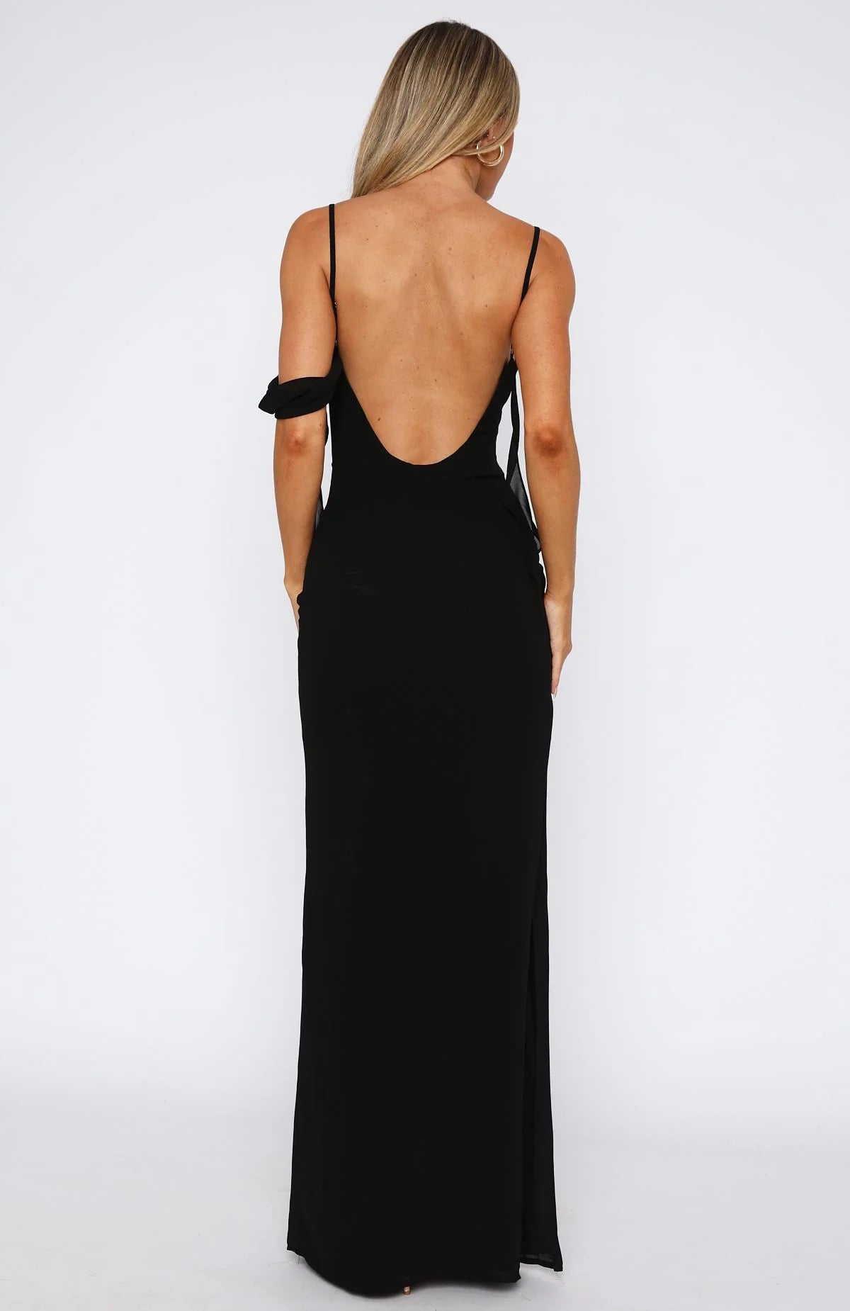 Love is in the air with the Love Blossoms Maxi Dress Black! Featuring thin, adjustable shoulder straps, a cowl neckline, side strap detailing, backless, maxi length with side leg split, lined, and invisible side zipper and clasp closure. Style with high shine accessories and a kitten heel for a night you won't forget!