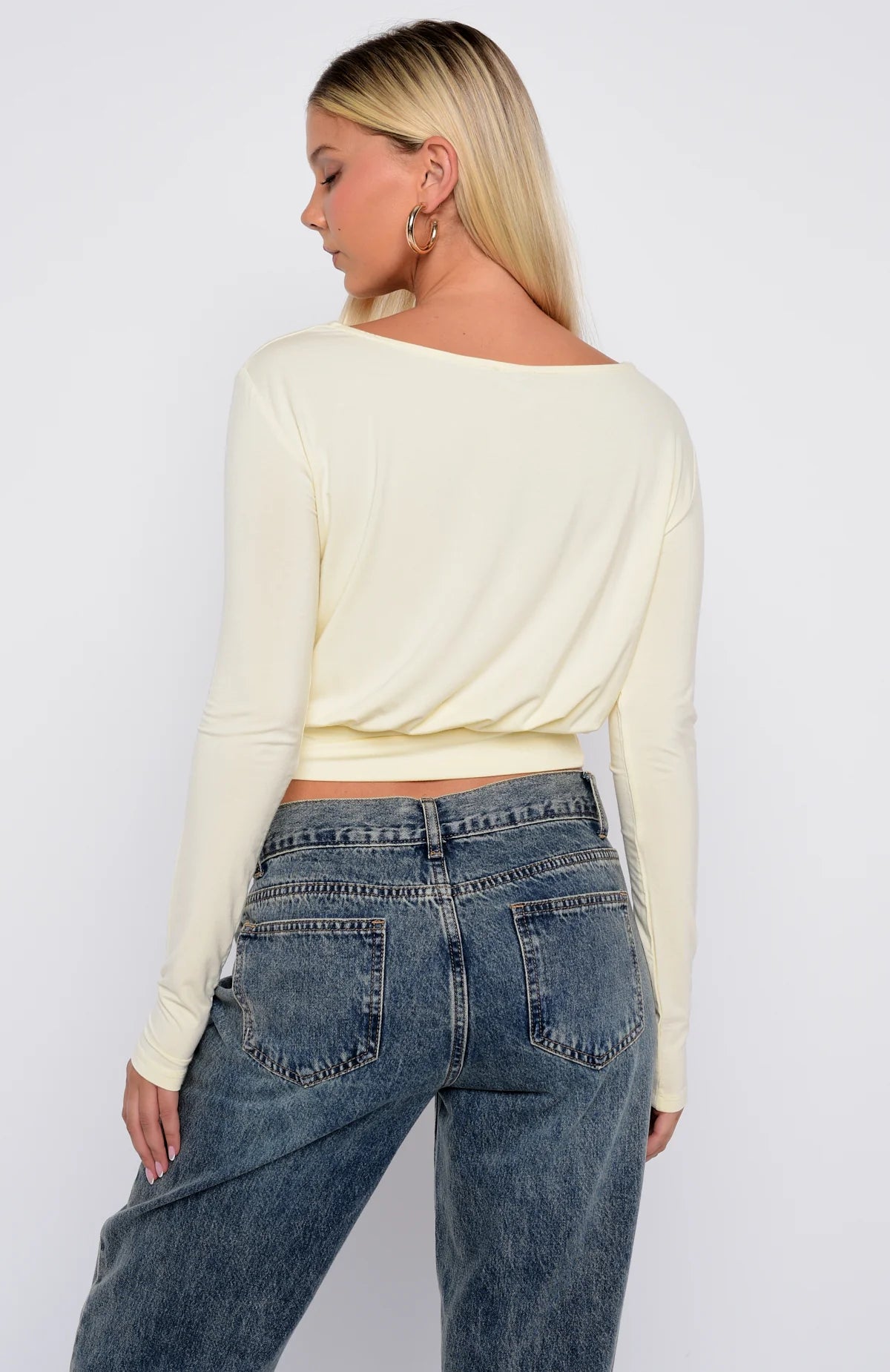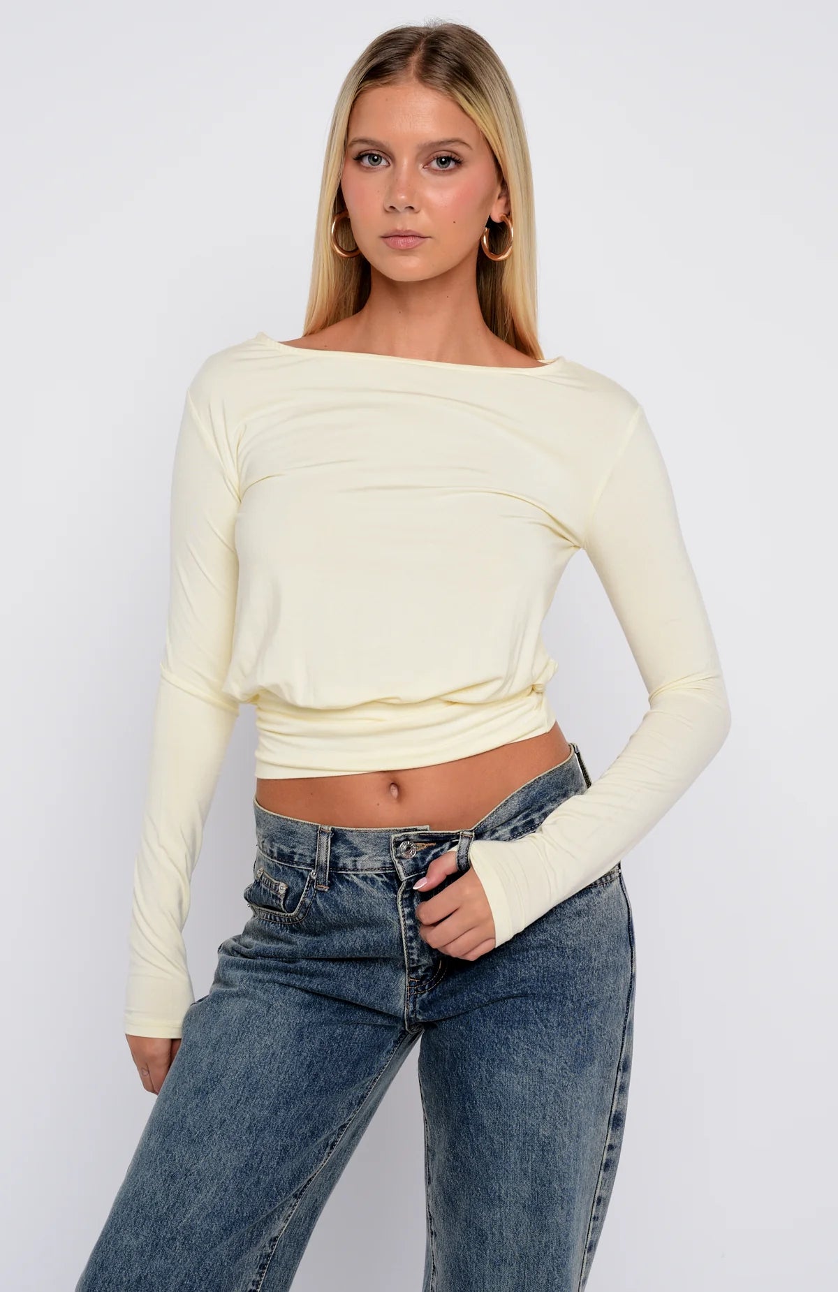 Casually chic! Introducing the Love On Lock Long Sleeve Top in Cream. Crafted from a high‑stretch and unlined fabric, this top features a refined jewel neckline, a gently relaxed bodice, and a chic wide waistband to define the silhouette beautifully. Style with high-rise denim, topped with a leather jacket, or let your layered necklaces shine against its timeless silhouette.