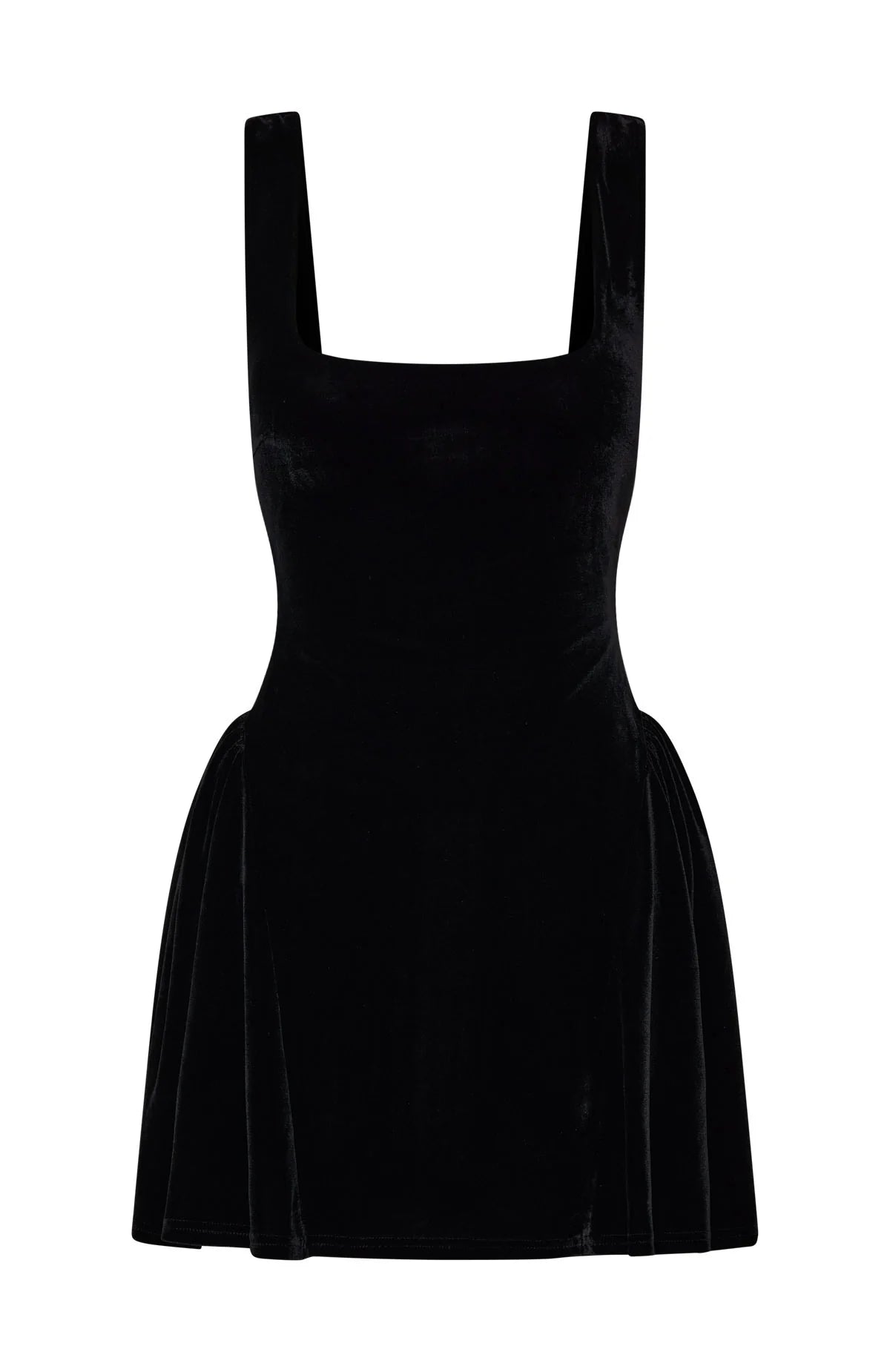 Louvre is in the air! The Midnight In Paris Velvet Mini Dress in Black features thick shoulder straps and a square neckline that gracefully leads to a fitted waist, accentuating your silhouette. Designed with a voluminous skirt featuring a tulle underskirt detailing at the hips, corsetry-inspired lace-up back with invisible back zipper, hook and eye closure and fully lined, velvet material. Heels on, bag in hand, gold jewellery glowing, and own the moment.