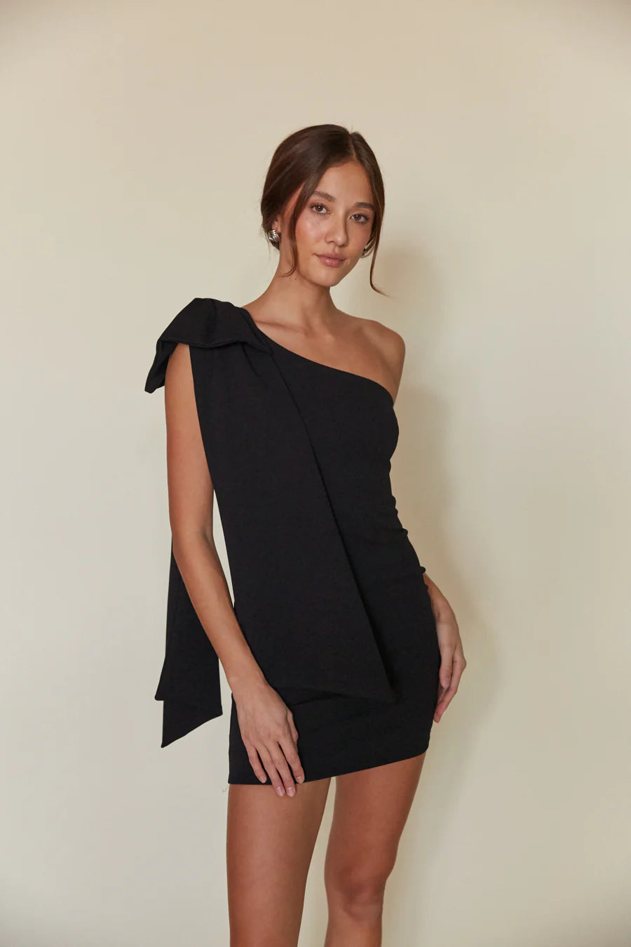 Turn heads in this sweet and special mini dress. The Mischa One Shoulder Bow Bodycon Mini Dress features a bodycon silhouette, one shoulder neckline with a sweeping bow detail. Available in white, black, and red. Pair with a sleek to complete the look!