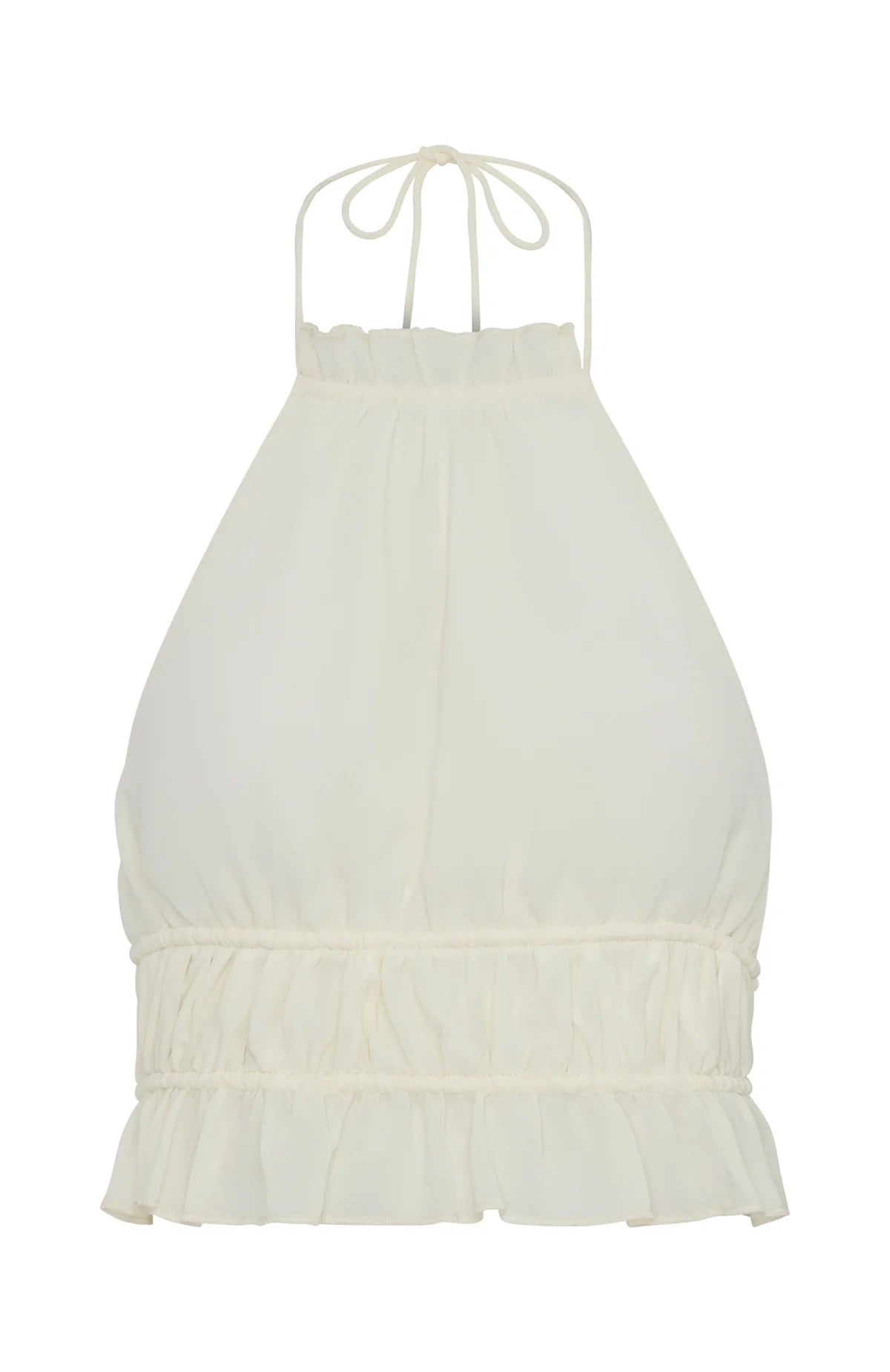 The No Contact Top Off White is the perfect summer coded fit’. Featuring a halter neck design with self tie strap, high neckline, ruching detail and backless with adjustable self tie straps. Pair with the matching No Contact Maxi Skirt Snake to complete the look!