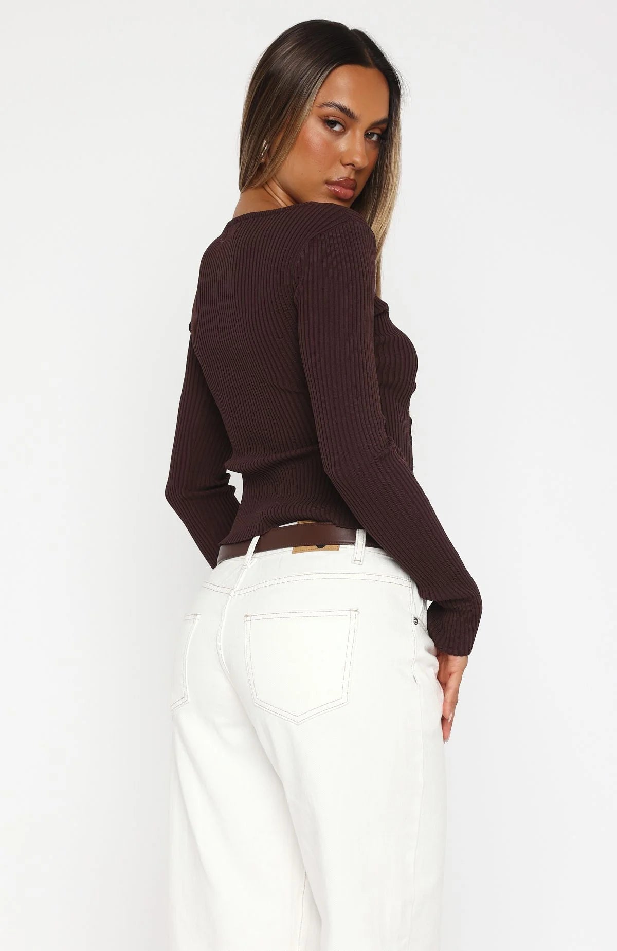 Catch eyes and keep cozy in the Notice Me Long Sleeve Top Chocolate! Featuring long sleeves, front button closure detailing, cropped length and ribbed, stretch material for an easy slip on design. Pair with white low rise jeans and a shoulder bag for a look we adore!