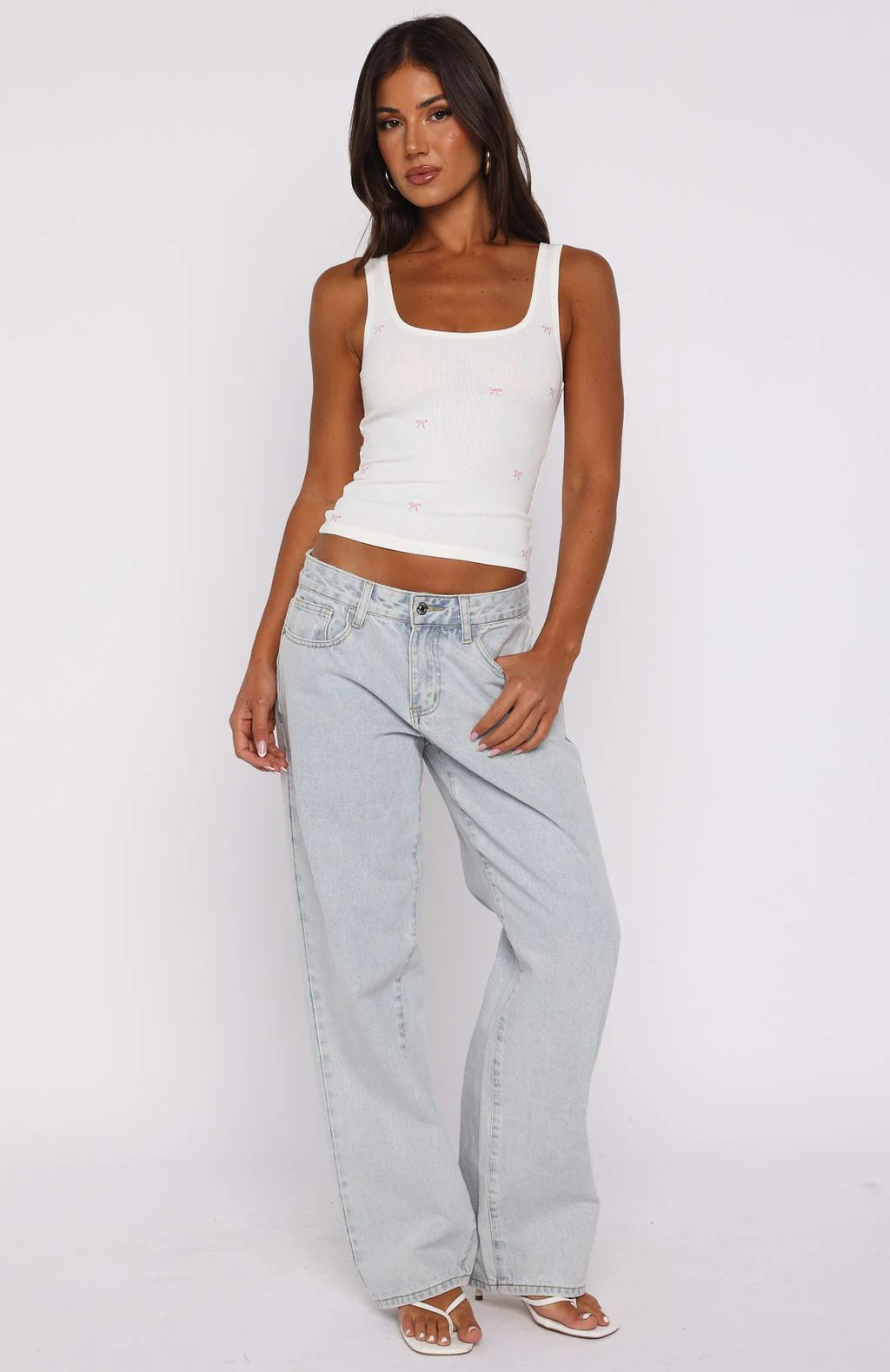 Hey girlies, meet your new obsession: the Perfectly Tied Ribbed Tank in White. It features thick shoulder straps, a flattering scoop neckline, fully lined, and a snug, high-stretch ribbed fit adorned with charming stitched bows. Pair with your go-to denim jeans and sandals for an effortlessly stylish and irresistibly cozy fit.