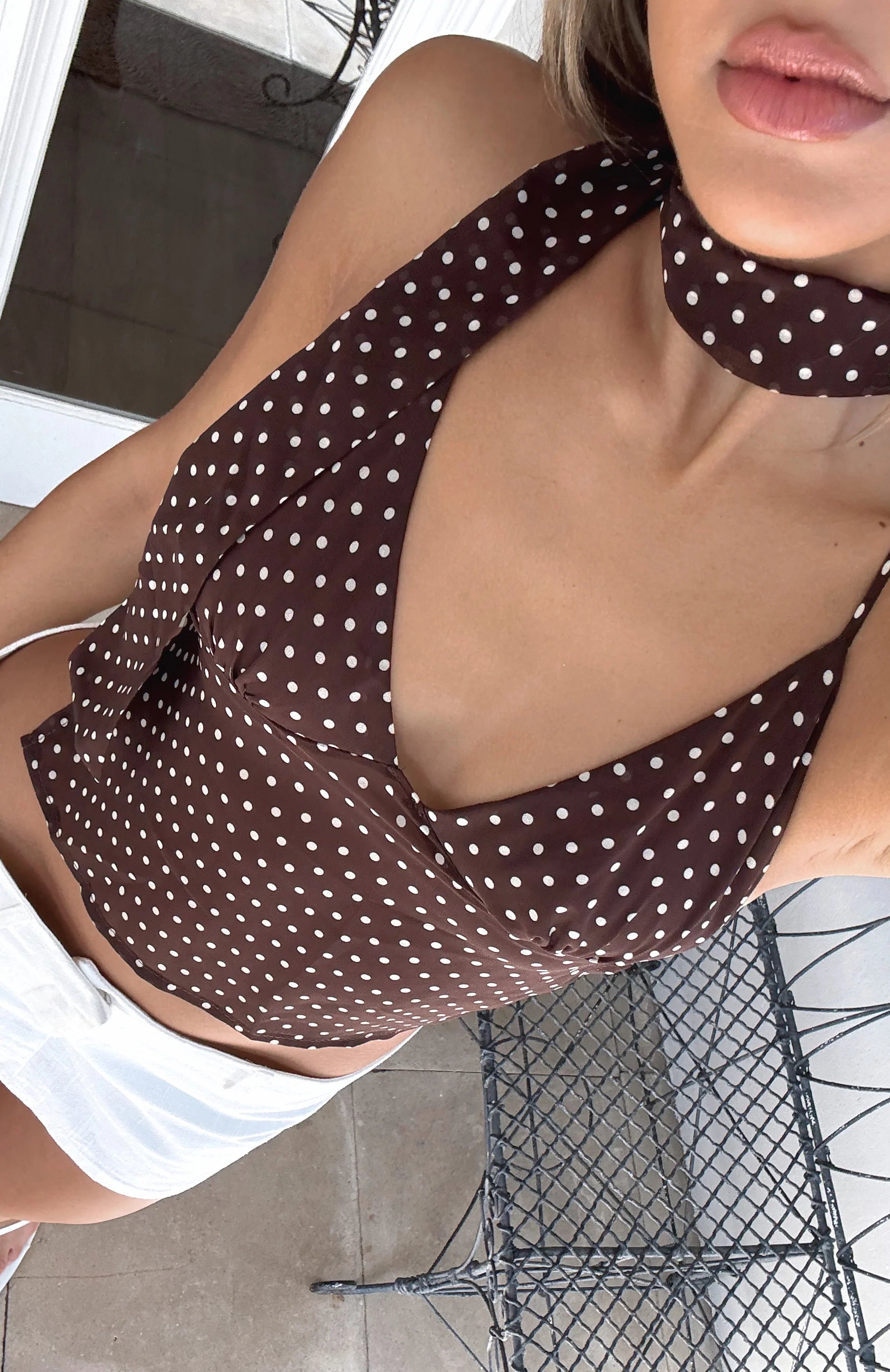 The Quick Getaway Top in Navy Polka Dot is the ultimate cool girl top! Features a halter neckline with self tie straps, self tie straps centre back for support, backless and separate scarf to elevate the look. Complete the look with the matching Runaway Heart Mini Skort Chocolate Polka Dot for a fit we love!