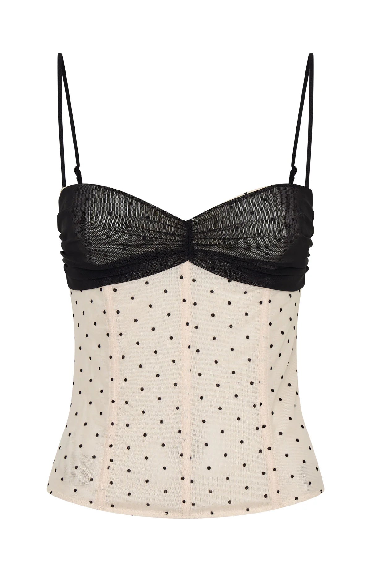 Your glow‑up uniform! The Roam Free Top in Cream/Black Polka Dot features thin adjustable straps, a sweetheart neckline with under‑wire, and a sash under the bust. Internal boning and a fitted silhouette ensure structure, and the fully lined design keeps it polished and comfortable. Style with the matching Roam Free Shorts and heels for a chic long lunch fit.