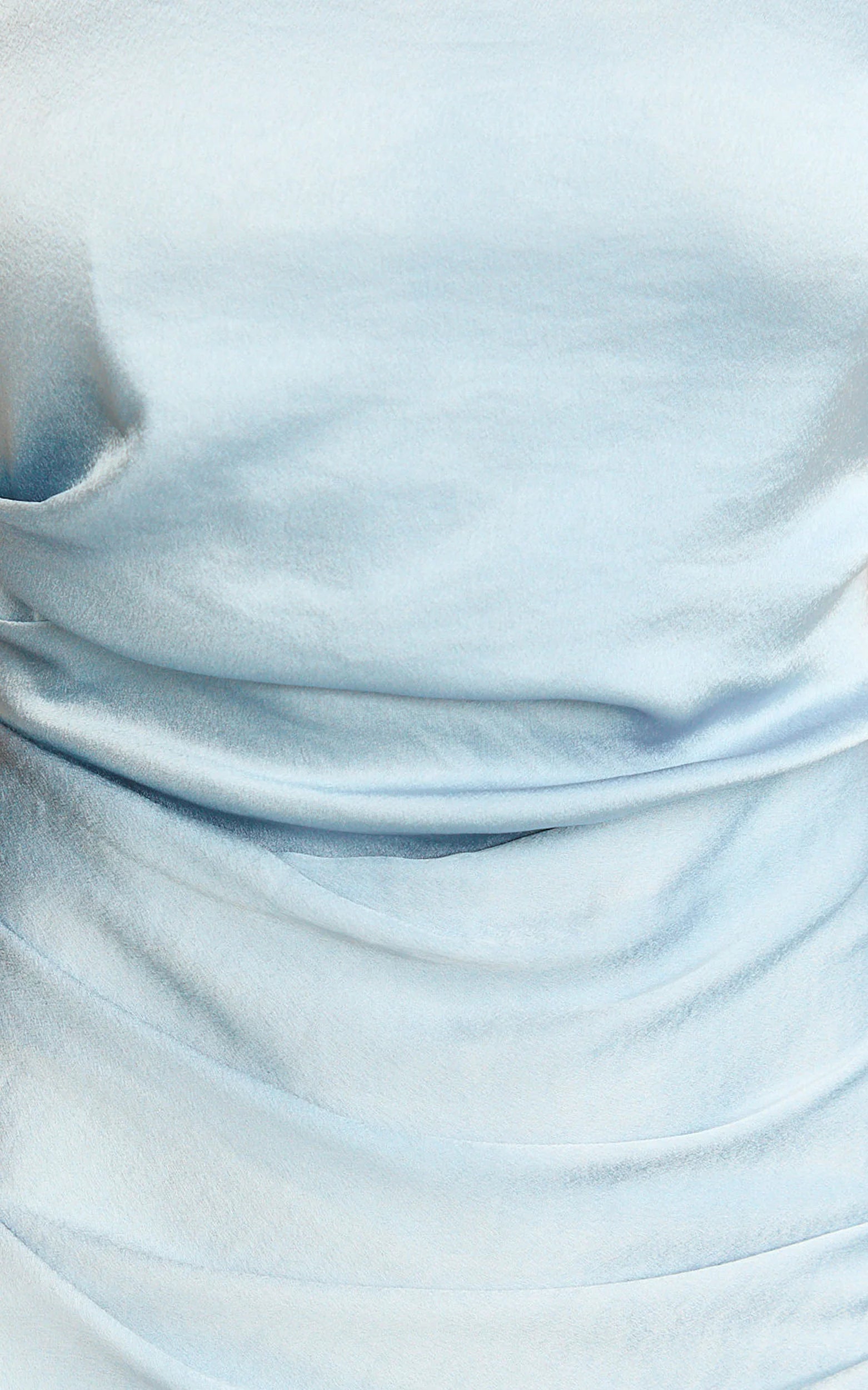 Slip into the Rumi Midi Dress – Ruched Bodice Satin Dress in Pale Blue when you want confidence on cue. It’s the kind of blue that brightens your skin, the kind of fit that says “I’ve got this,” and the kind of polish that works for weddings, cocktails, and every dressed-up moment in between.