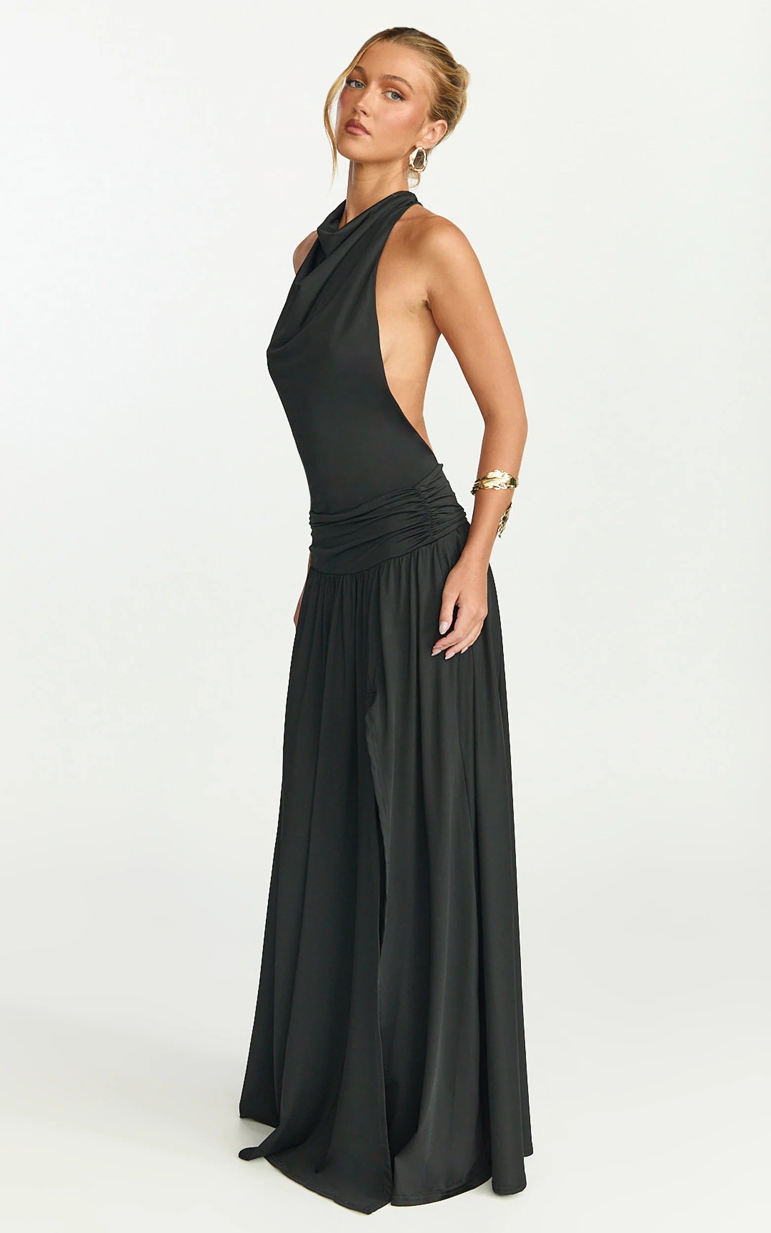 This black maxi serves sleek drama with a high cowl neckline, an open back and a fluid silhouette that skims in all the right places. Designed to flatter every body, it’s the perfect plus-one for weddings, date nights or that fancy RSVP where confidence is the dress code.