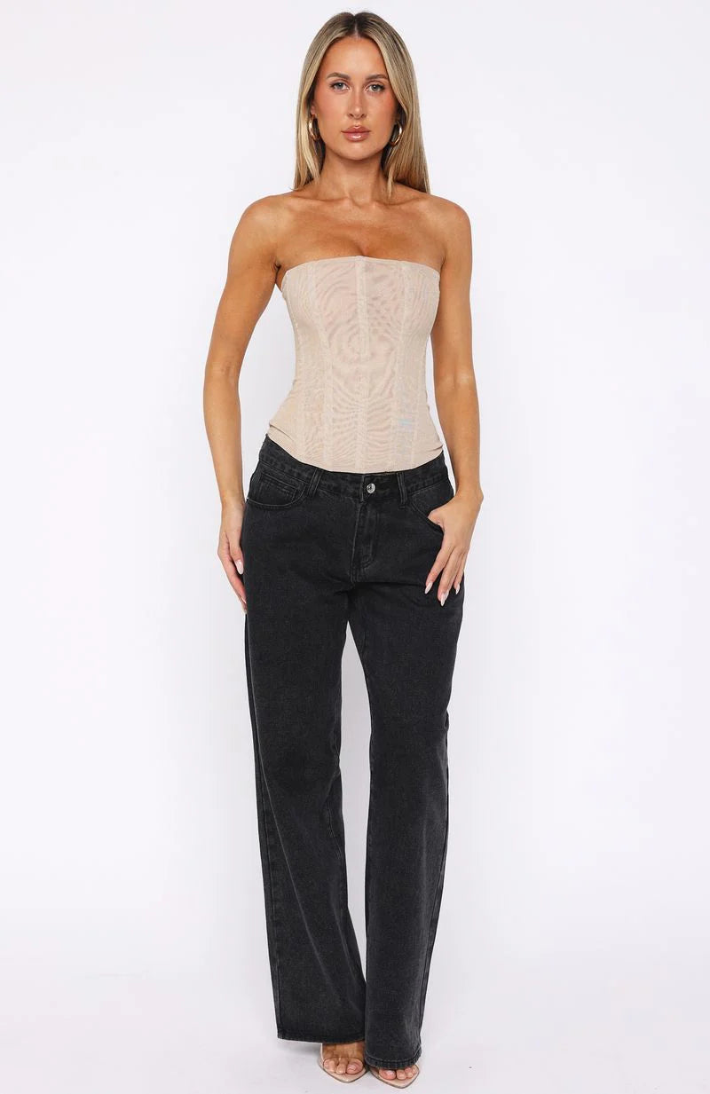 Make a dazzling entrance in the Tell Me A Secret Strapless Bustier in Champagne Glitter! Featuring a strapless neckline, structured internal boning for sculpted support, ultra‑shimmer fabrication, fully lined for comfort, and a sleek invisible back zipper with hook‑and‑eye closure for a perfect finish. Style it with our matching mini Shorts, heels and layered gold jewellery to light up the dancefloor.
