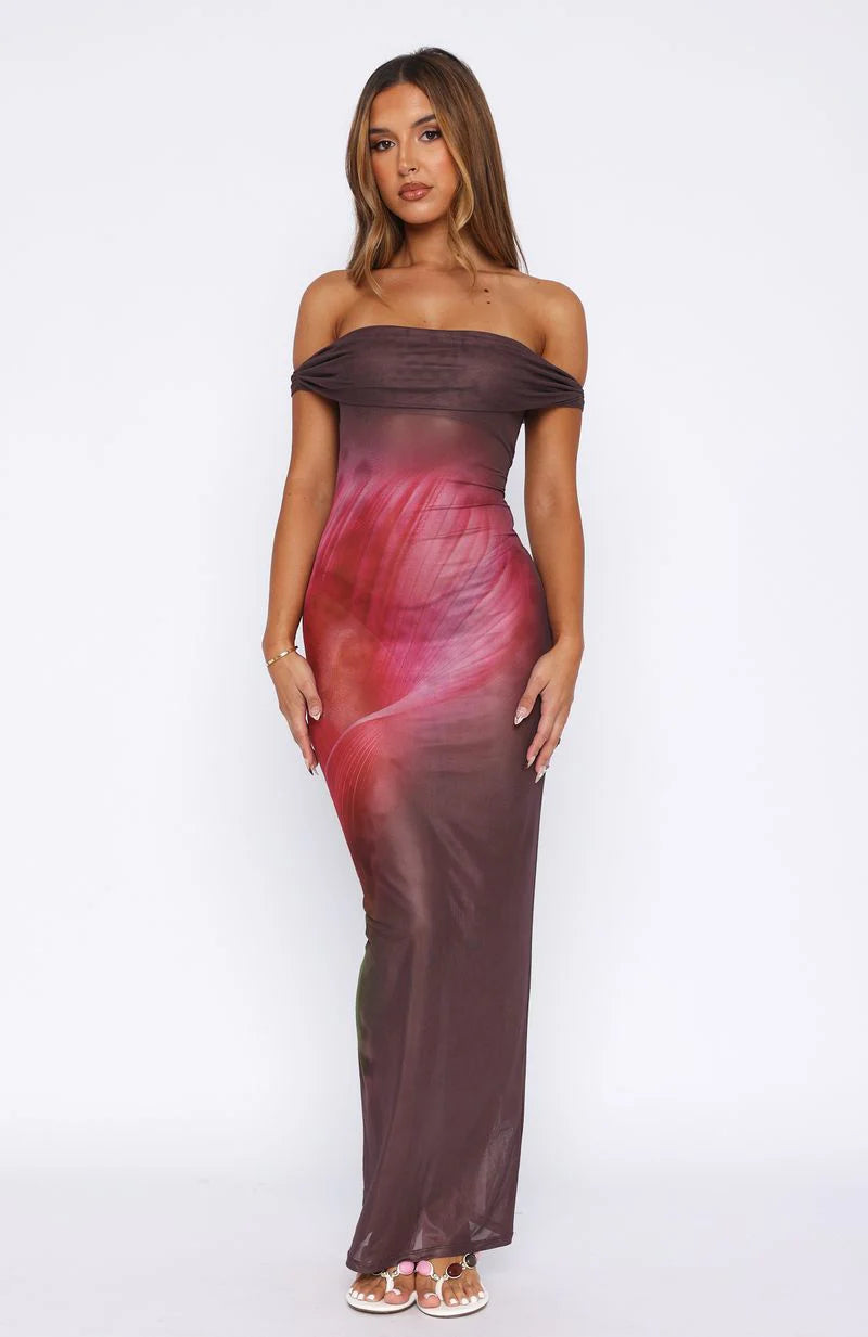Essential for summer nights - welcome the Sweet Revenge Off Shoulder Maxi Dress in Blush Lily! Features off the shoulder neckline, lined fabrication on bust and semi-sheer fabrication on length of dress. Complete the look with kitten heels, gold accessories and a shoulder bag to make a statement.