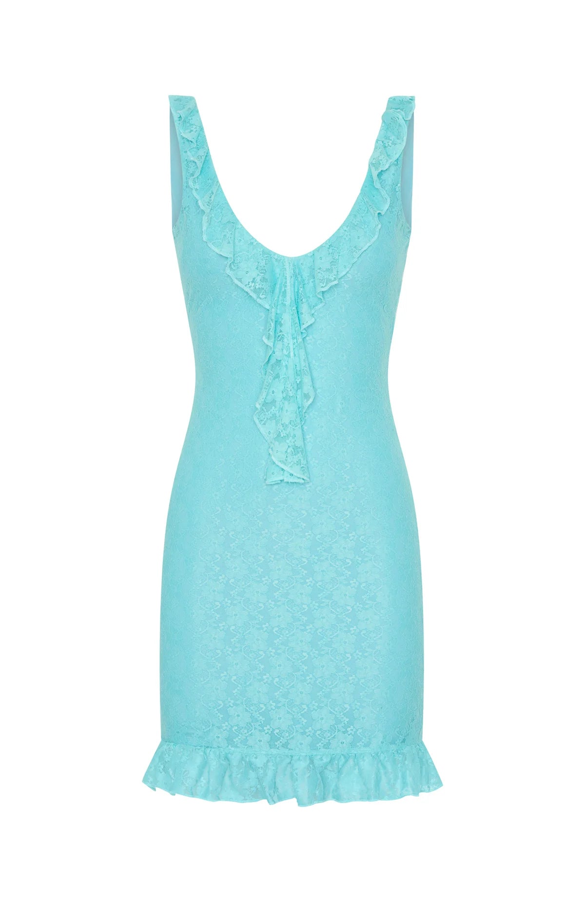 Pretty and perfect is how we would describe the Take A Bow Mini Dress in Aqua. Featuring halter neck, plunge neckline with frill design, lined, stretch lace fabric, frill hem and low back design. We love this paired with gold accessories and strappy heels and let the dress do all the talking!