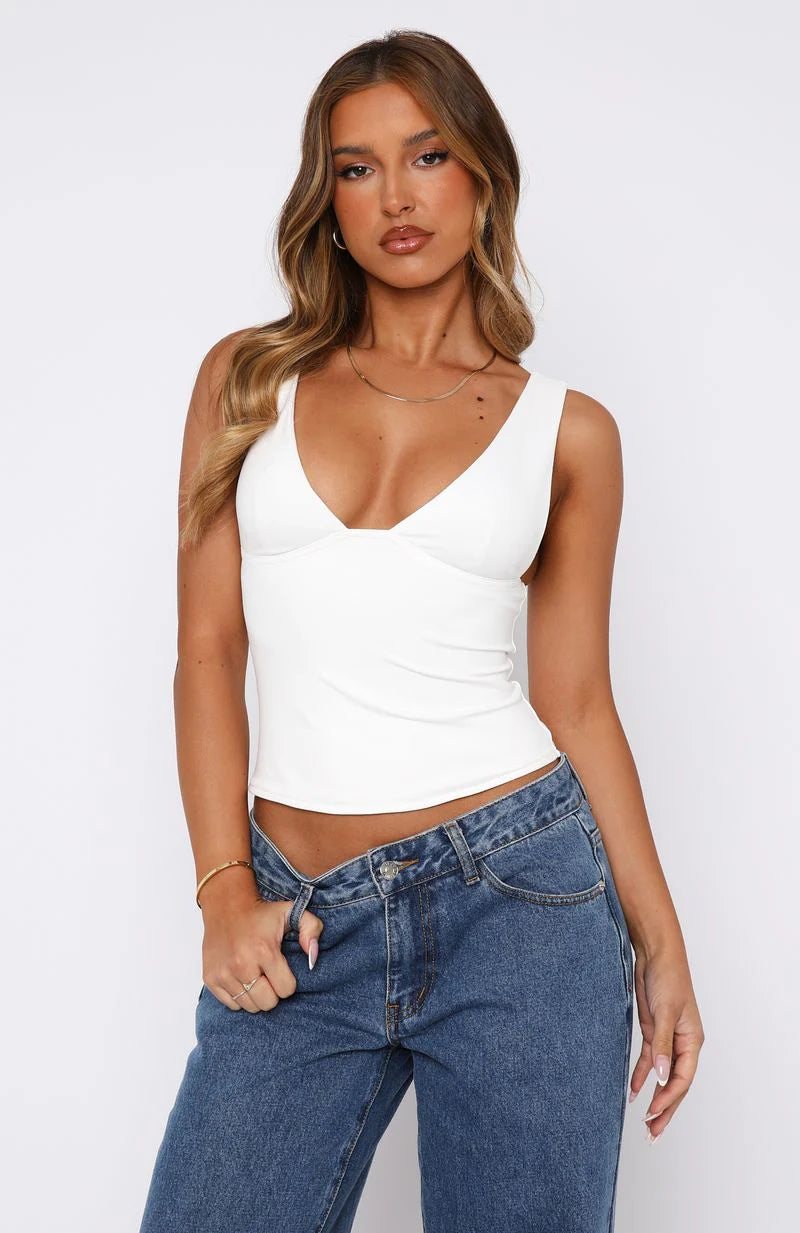 It's your moment, own it in the Taking Up Space Top White. Features thick shoulder straps, cropped length, low plunge neckline, lined and soft, stretch material for an easy slip on style. Style with your favourite pair of jeans for a capsule wardrobe staple.