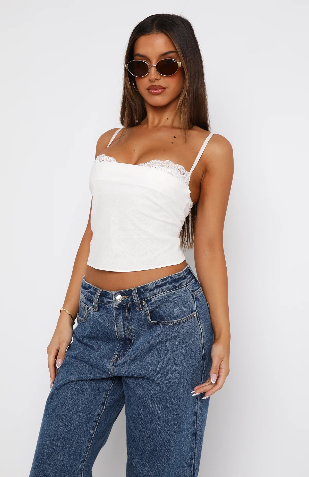 Add a subtle touch of luxe to your outfit in the Tell Me All About It Top White. Features a sewn in lace bra with thin adjustable straps and adjustable back closure, lightweight linen fabric, tie-up back detail and layered bra effect. Looks best paired with a low rise jean and mini bag for a dainty look!