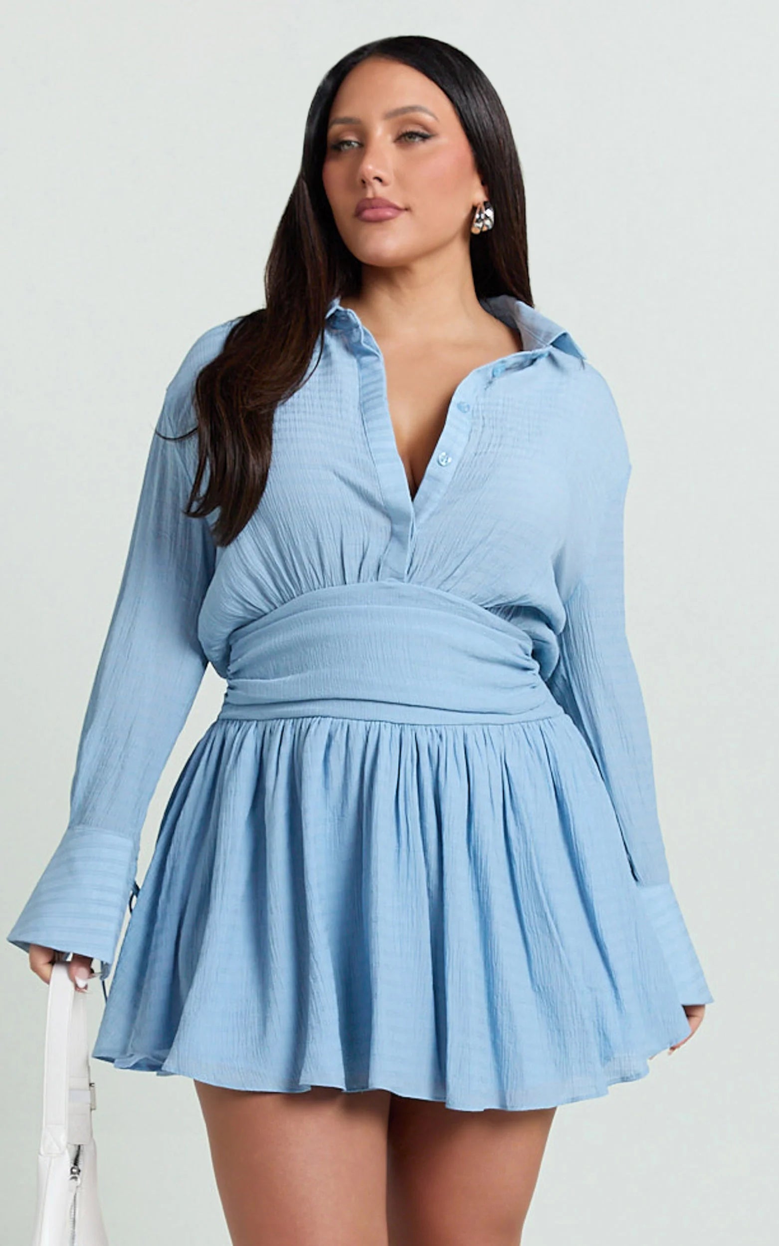A collared neckline, long sleeves and a cinched corset waist bring serious streetwear trends vibes, while the shirt dress silhouette keeps it effortlessly versatile. From brunch dates to cocktails after dark, this piece flexes with every plan on your calendar.