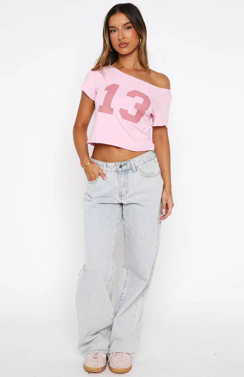 Add a fresh entry to your outfit diary! The Whenever You're Ready Off Shoulder Relaxed Tee in Pink features a bold “13” graphic centre-front, an off-the-shoulder neckline, short sleeves, raw hem and cropped relaxed silhouette. Pair it with low-rise denim and sunnies for a cool-but-casual vibe.