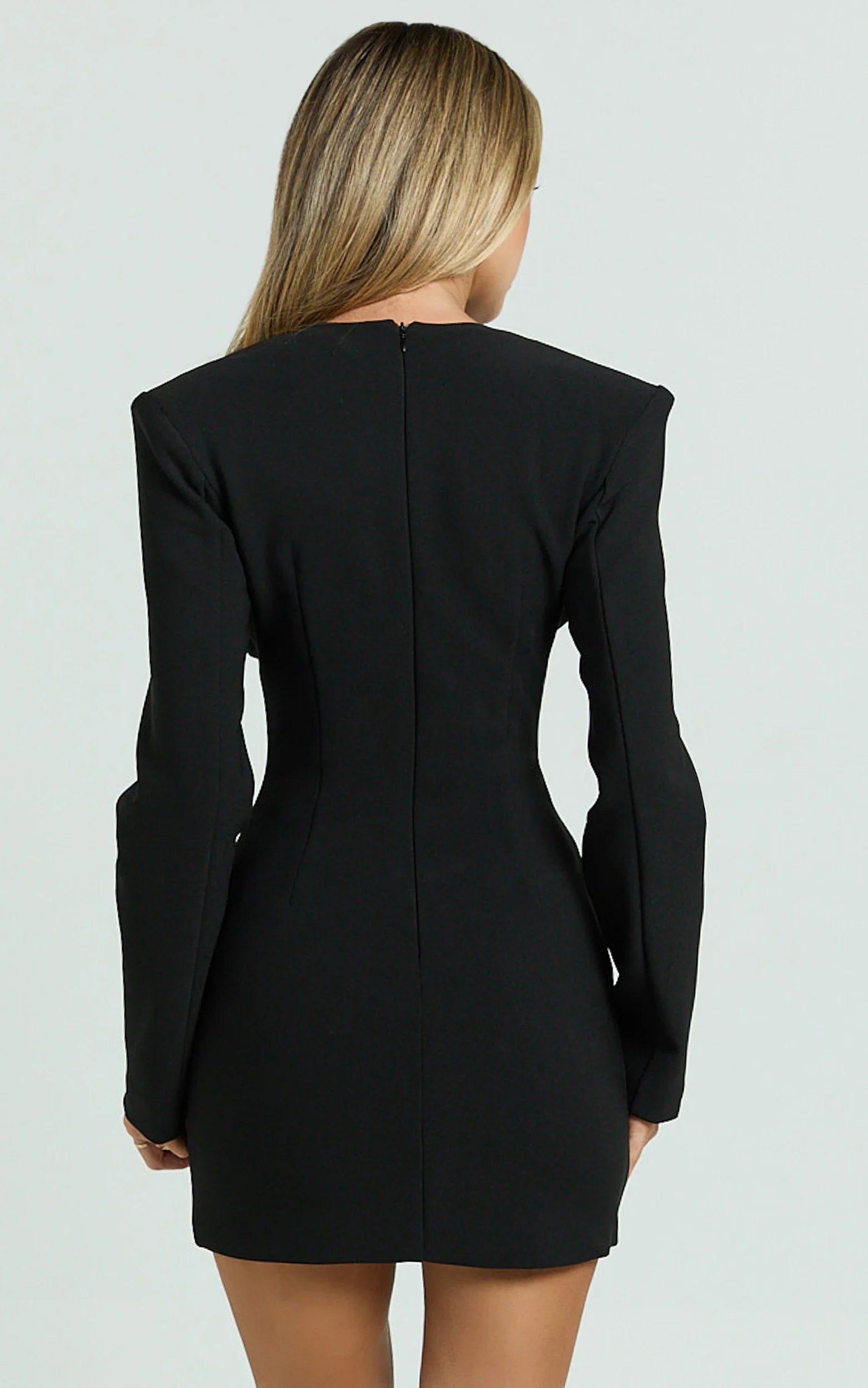 A wide shoulder and sweetheart neckline sculpt and flatter, while the fitted mini silhouette serves legs for days. Polished yet playful, it’s made to move from dinner to dance floor with ease, think subtle Luxury Textures and a hint of Disco Colors that catch the light just right. This is the black Dresses moment you’ll wear on repeat.
